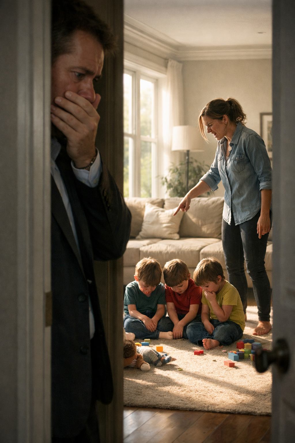 Carlos looked at his triplets—at Pablo wiping his tears, at Mateo standing protectively beside his siblings, at Lucía holding her chin high despite her fear.