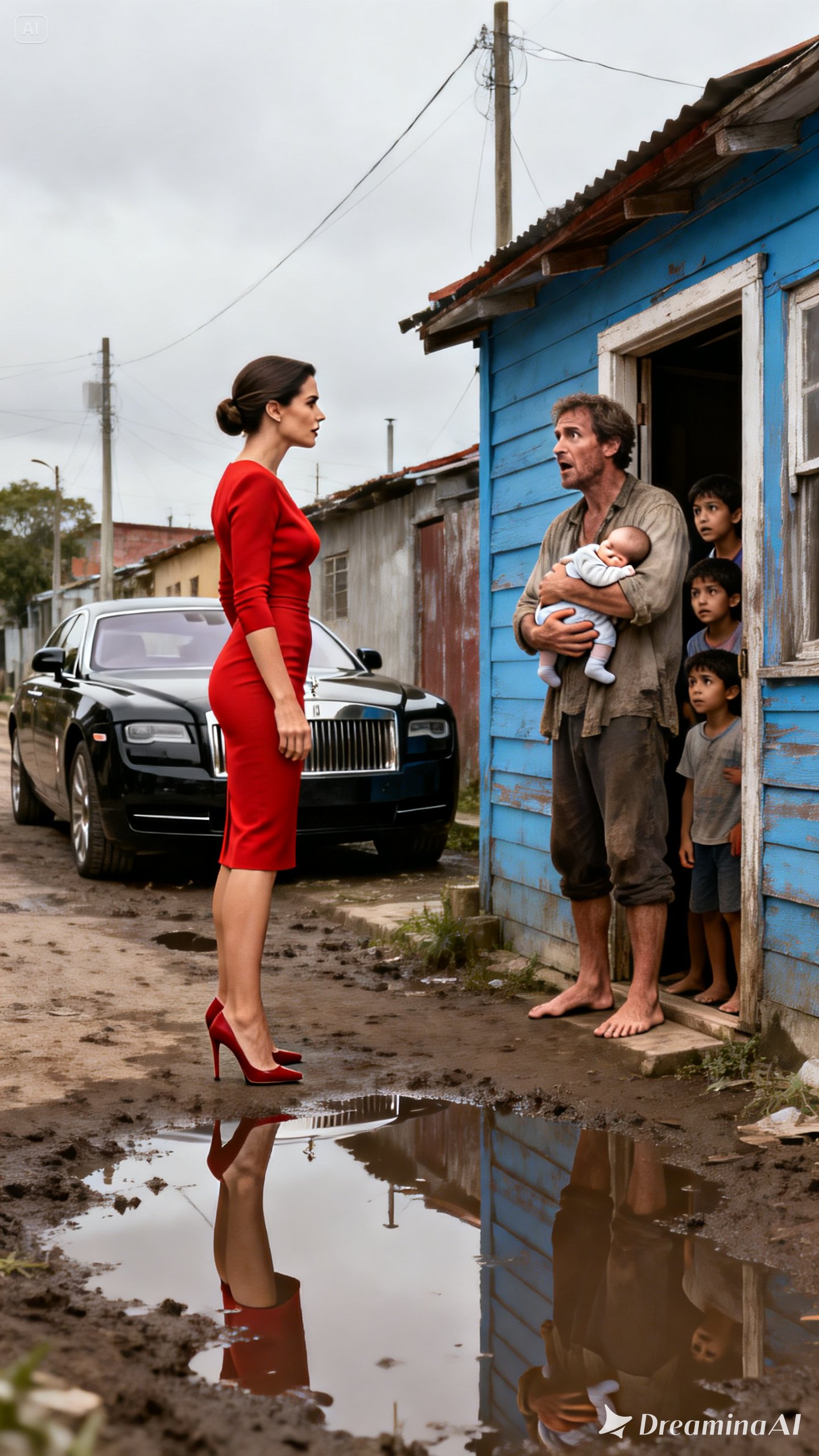 The address took her far from her usual world: 847 Los Naranjos Street, in San Miguel—a modest, working-class neighborhood. As her black Mercedes crept over cracked pavement, past muddy puddles, stray dogs, and barefoot children, Laura felt the distance from her own life with every block. Curious neighbors stared at the car as if it didn’t belong there—because it didn’t.