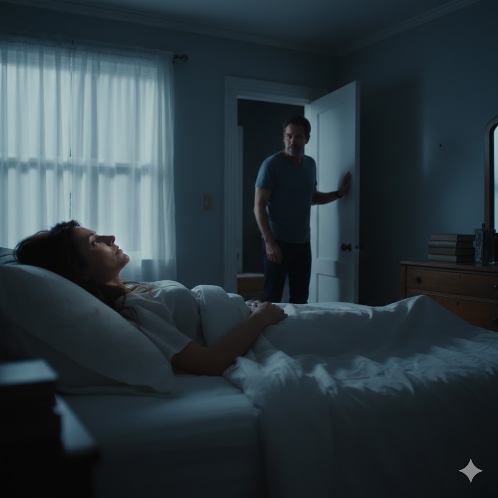 He stepped in softly, careful not to wake me—or so he believed. I heard him rummaging through the dresser, then stop. I kept my eyes closed, uncertain whether I wanted him to know I was awake.