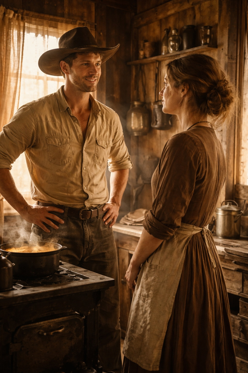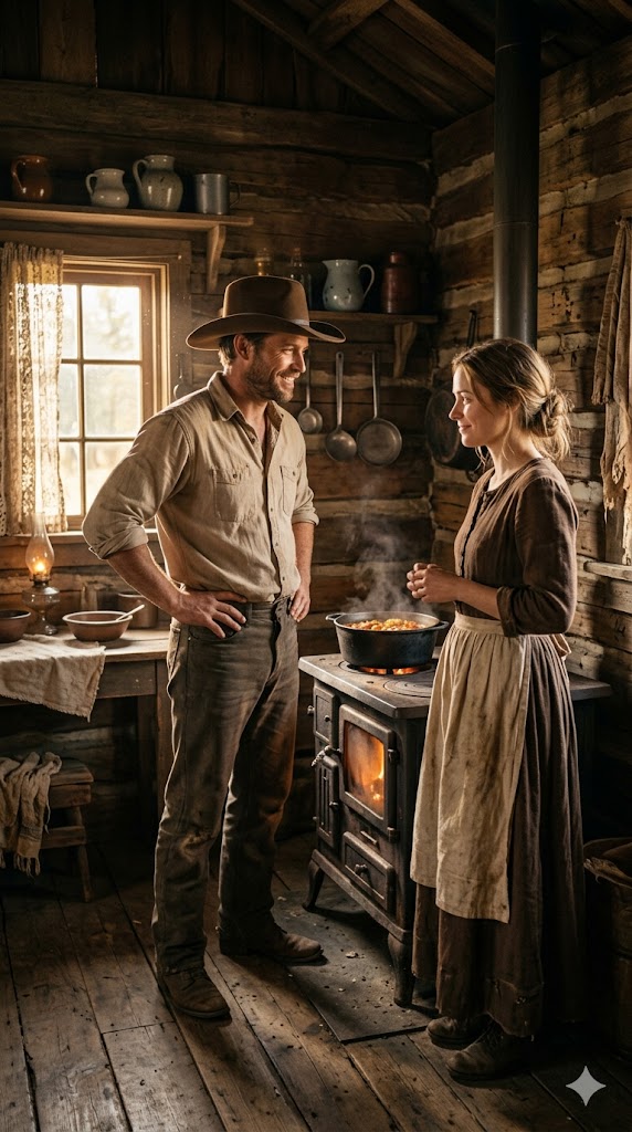 Bacon crackled in the skillet. Potatoes sizzled beside onions. Fresh bread warmed near the stove.