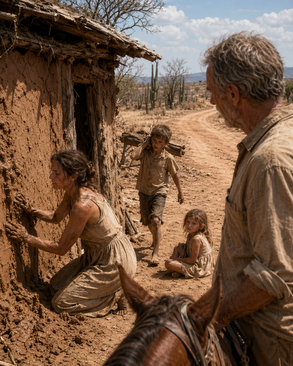 I was riding back along the dirt road when something made me pull the reins. Under the harsh sun of eastern Sonora, I saw a woman and two children trying to build a mud house with their bare hands. But it wasn’t really a house. It was desperation. The boy could barely lift a piece of wood larger than himself. The little girl no longer had the strength to sit upright. And in that moment, I understood with painful clarity: if I kept riding on, they might not survive.