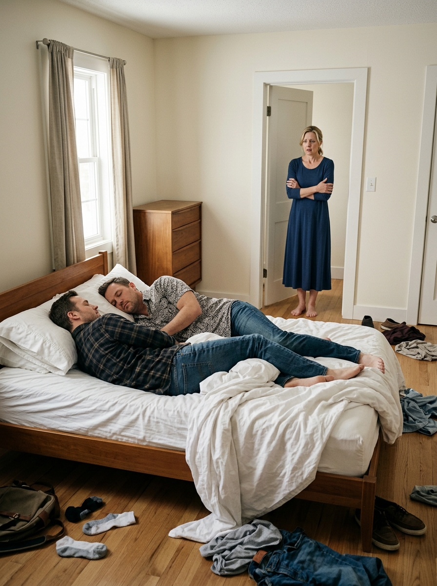 Her husband stood there, stepping out of their son’s room, hair disheveled, still half asleep.