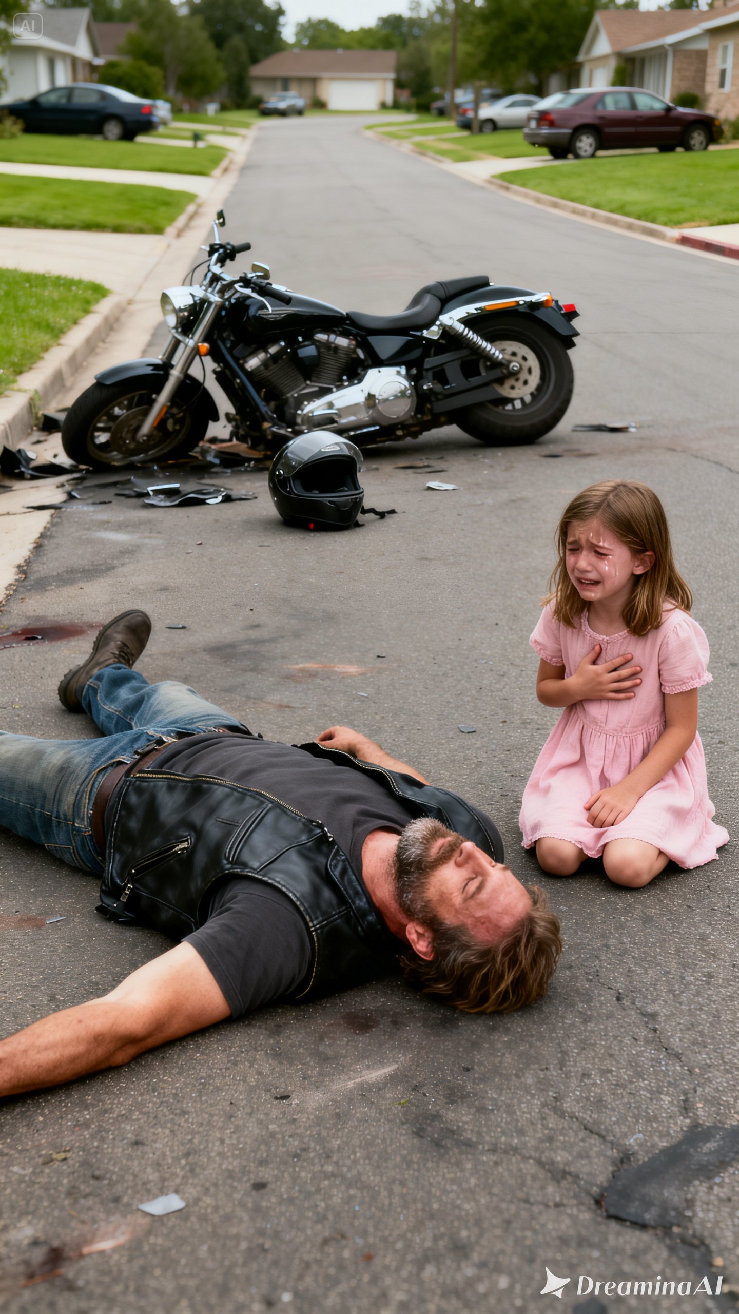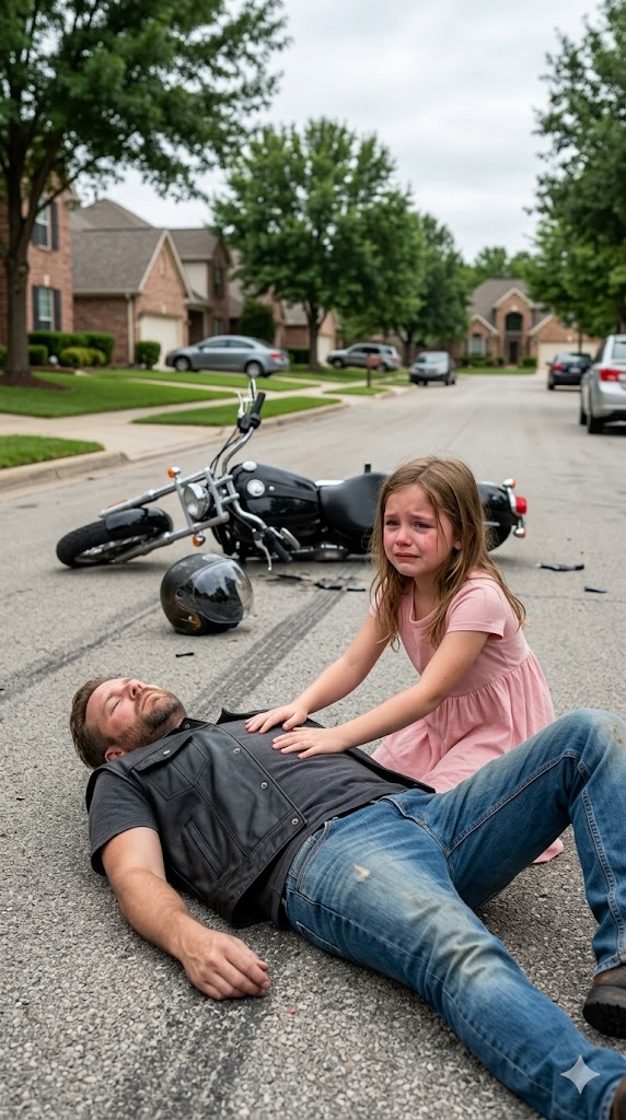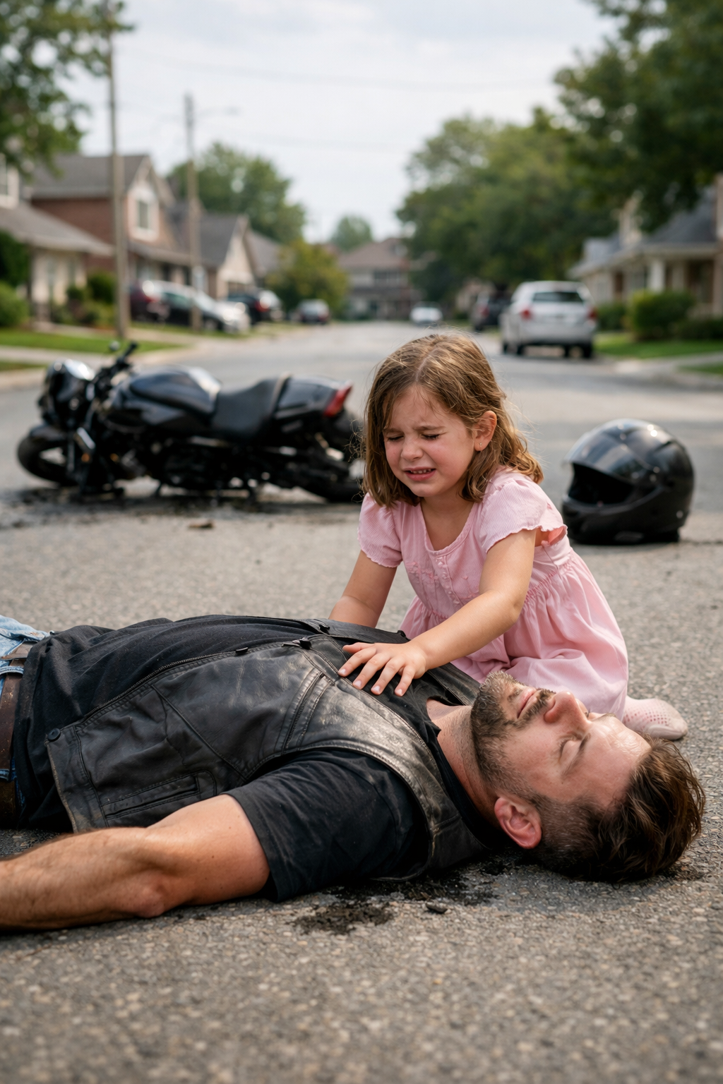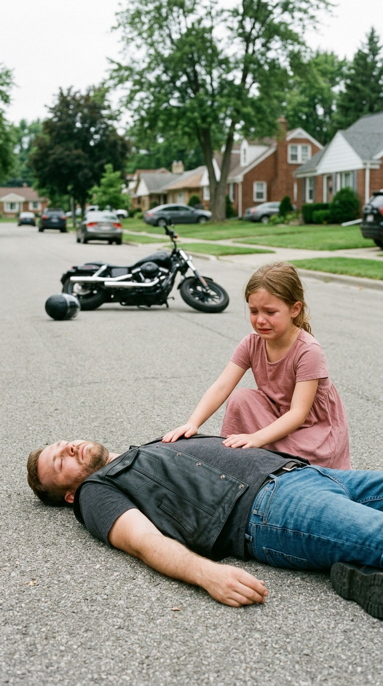 A Feared Biker Lay Injured and Alone on a Silent Road Believing No One Would Help Someone Like Him — Unaware That a Little Girl’s Courage to Stay Would Save His Life, Restore His Daughter, and Change Her Own Future Forever