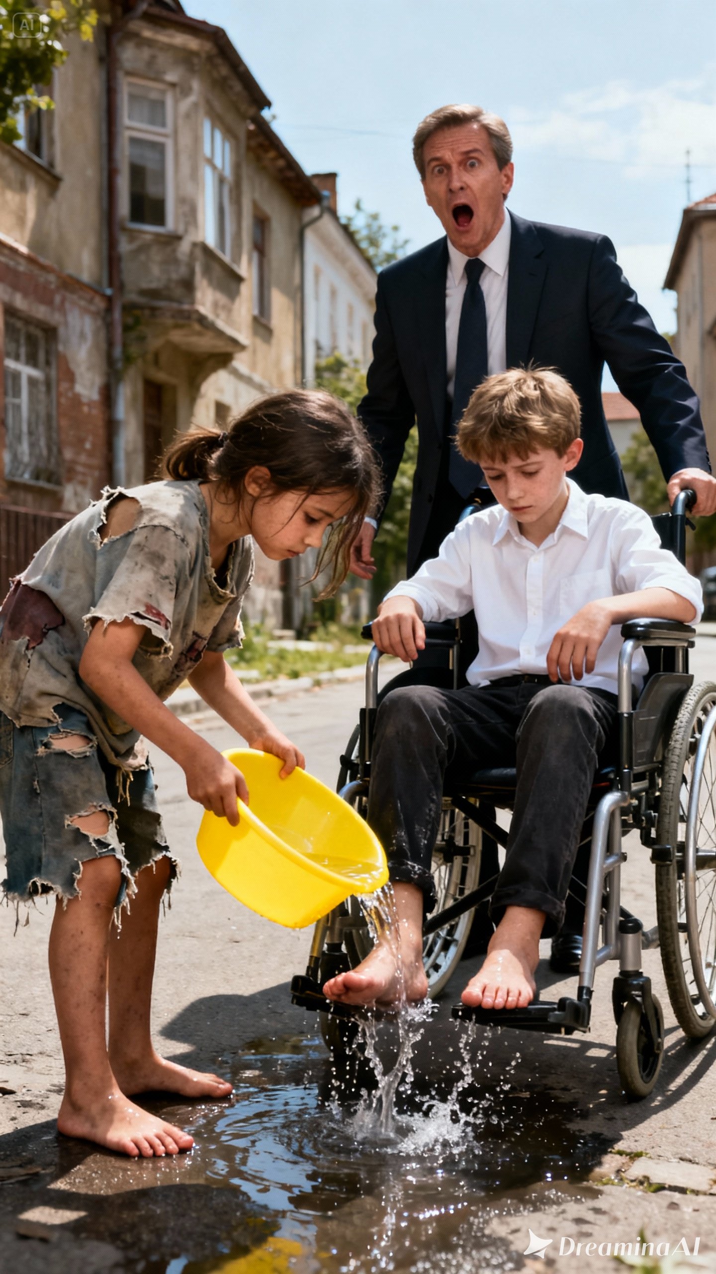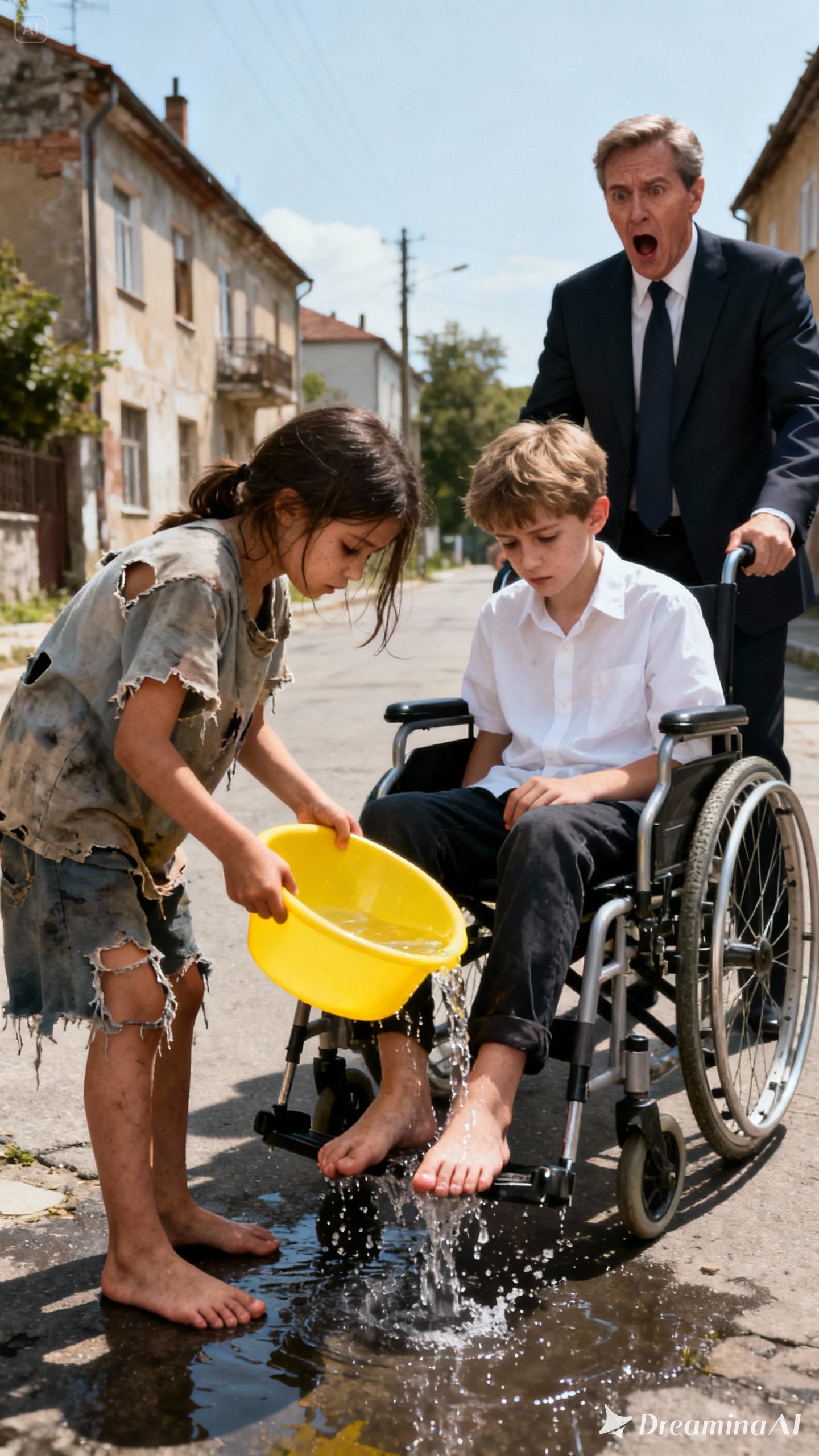 The girl knelt and carefully removed Noah’s shoes, as if following a sacred routine. She uncorked the vial and poured the liquid over his calves. It ran down his skin, cool and without scent, soaking into the blanket and dripping onto the dusty ground.