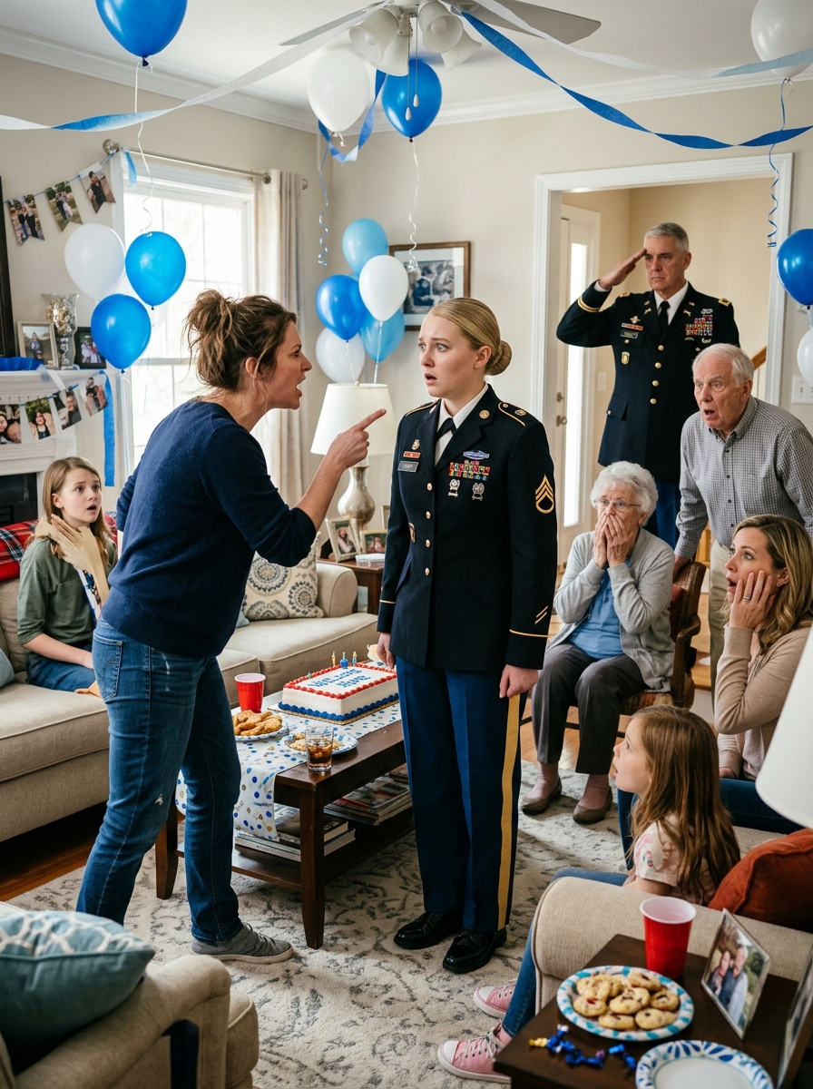 After eight years in the Army, I returned home for my sister’s celebration—and she introduced me as if I were the family’s embarrassment. Then everything shifted in a single second. A general stepped inside, looked straight past her, and said, “Major General Vance, we’ve been waiting for you.” The room fell completely silent. My sister had spent years treating me like a joke. She had no idea who I really was—or what was about to unfold next.