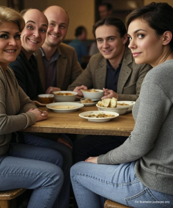 They sat with lowered eyes. Only Vika — Kirill’s wife — looked away, clearly uncomfortable.