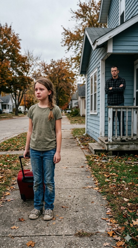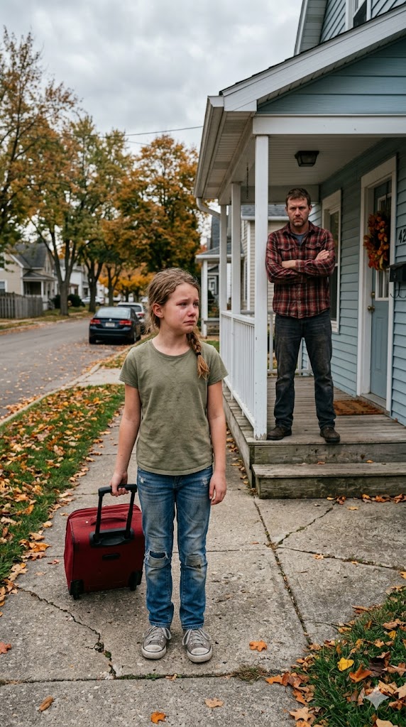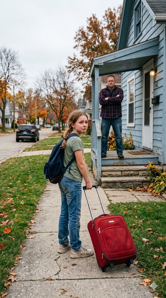 She was only fourteen — a thin, pale girl clutching an old backpack — standing in the pouring rain outside my house in Portland, Oregon. She didn’t argue. She didn’t protest. She simply looked at me with wide, frightened eyes — and then turned away, walking into the darkness as the storm swallowed her small figure.