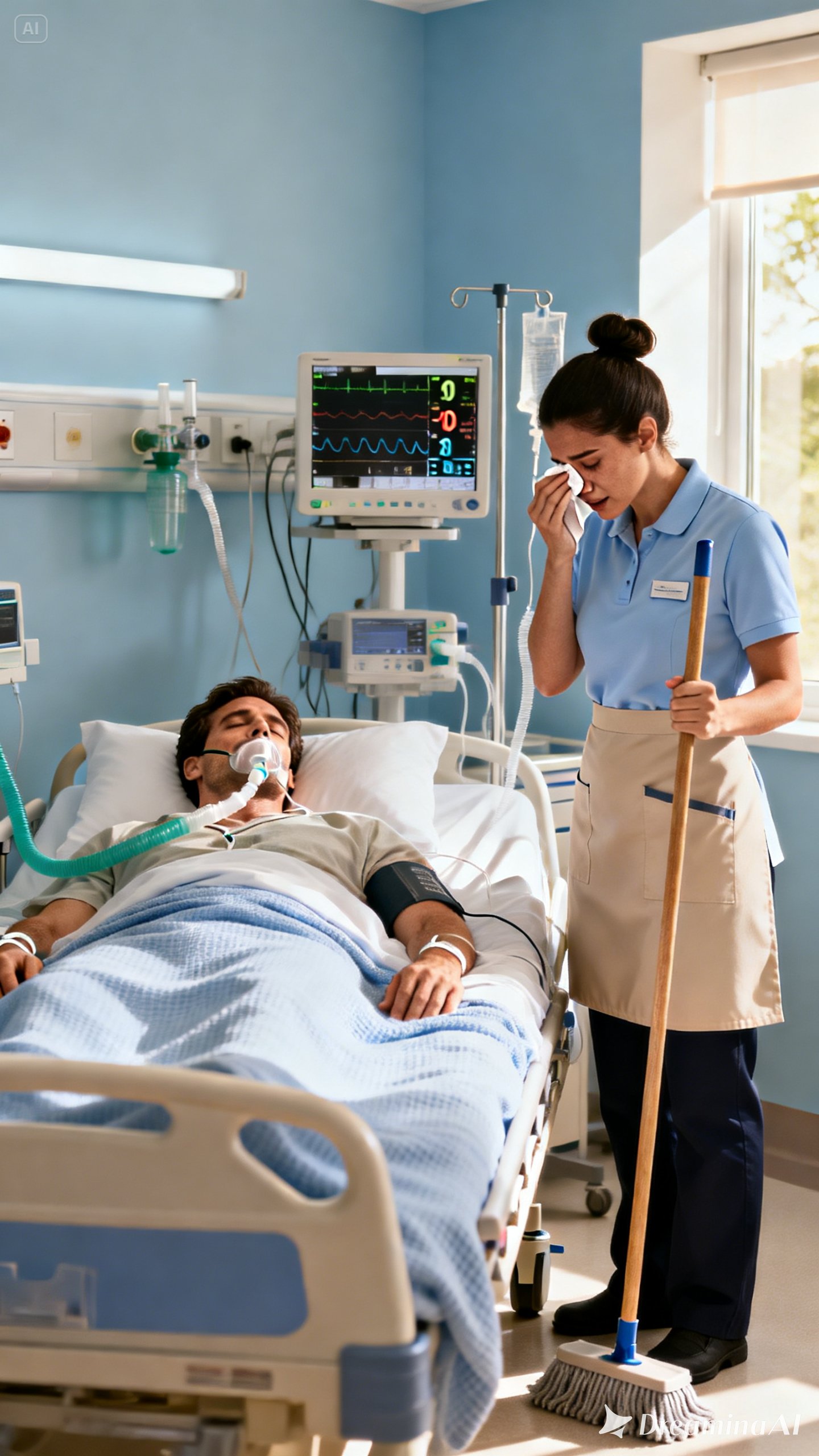The woman—Maria, though he still didn’t yet know her name—took a breath, wiped her tears with the sleeve of her uniform, and, believing she was alone, gently placed one hand over his.