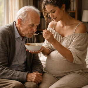 She moved slowly and carefully, trying not to make any noise. Her hair was tied back in a hurried ponytail. Her hands were rough from work. Her face carried the expression of someone who had endured too many long days and still kept going. She wore no perfume, no jewelry. There was nothing mechanical about her presence, nothing that suggested she was “just doing her job.”