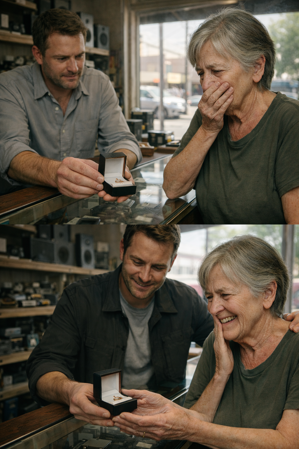 The assistant felt something twist inside his chest. He looked again at the ring, then at her trembling hands, her tired face—and understood this was not just an object, but a lifetime of love.