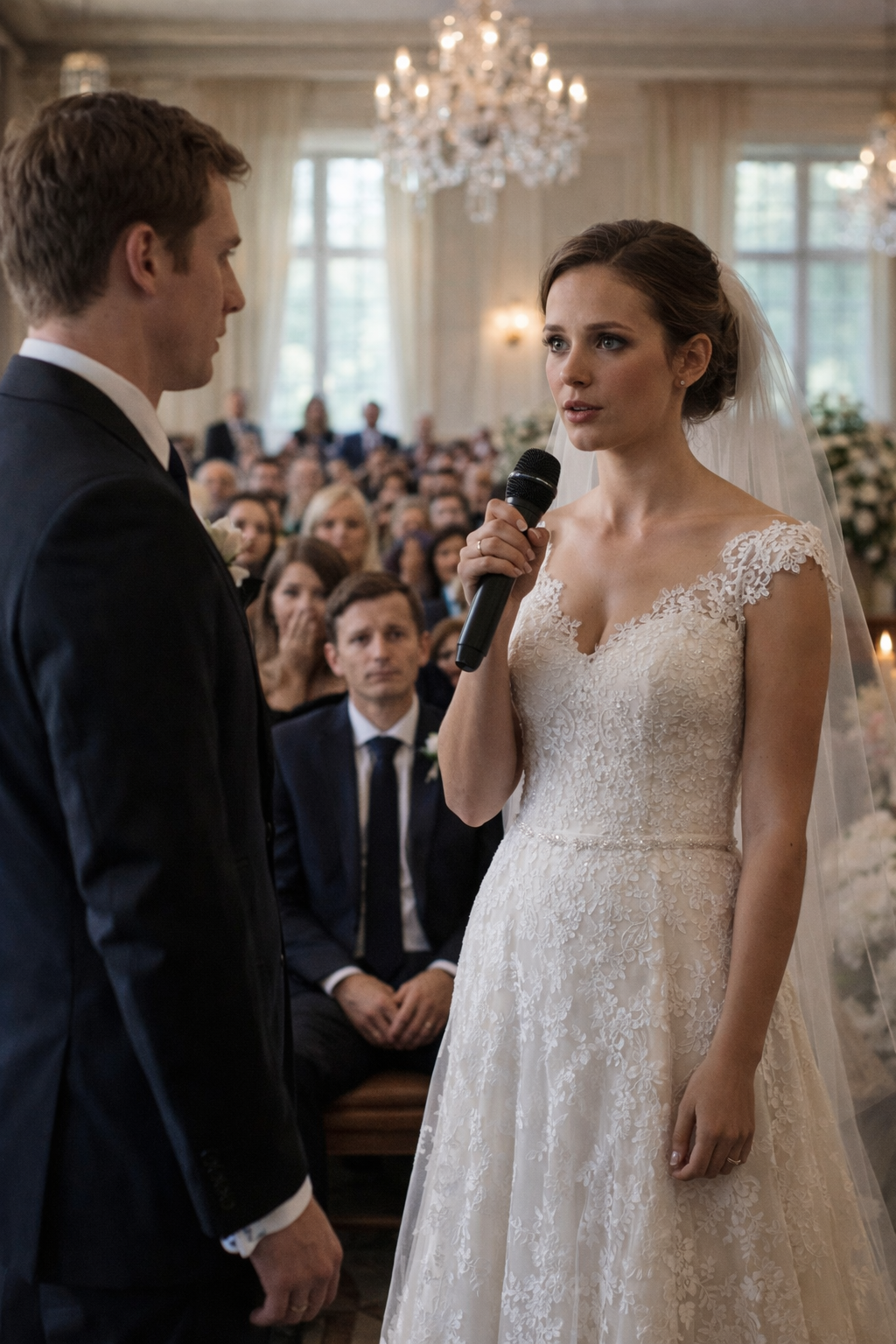 We entered the ballroom. Heads turned. Phones lifted. Cameras flashed. Dylan waited at the altar in a tailored navy suit, smiling like a man convinced he had already won. His mother sat in the front row, hands neatly folded, eyes shining with satisfaction.