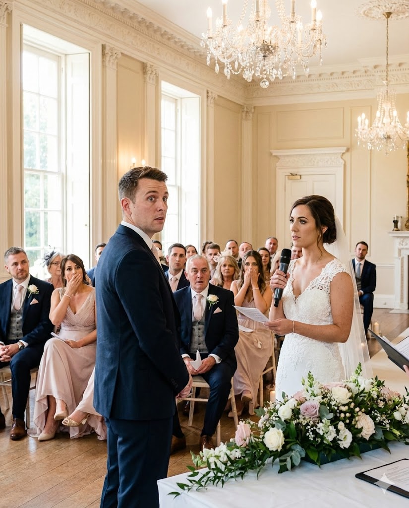 The officiant began speaking. Words about love and unity filled the room. Dylan delivered his vows flawlessly—promises of devotion, promises of loyalty. Every sentence sounded practiced, polished… and completely empty.