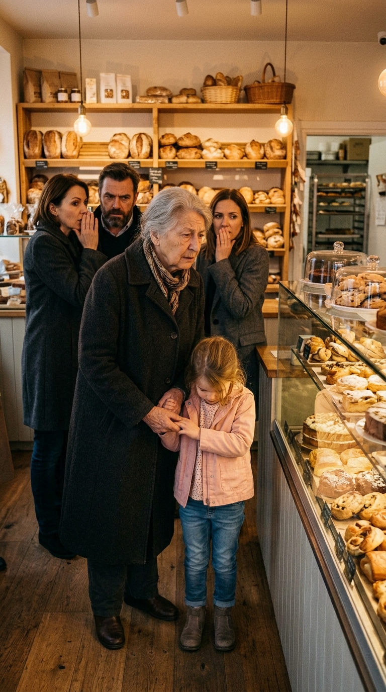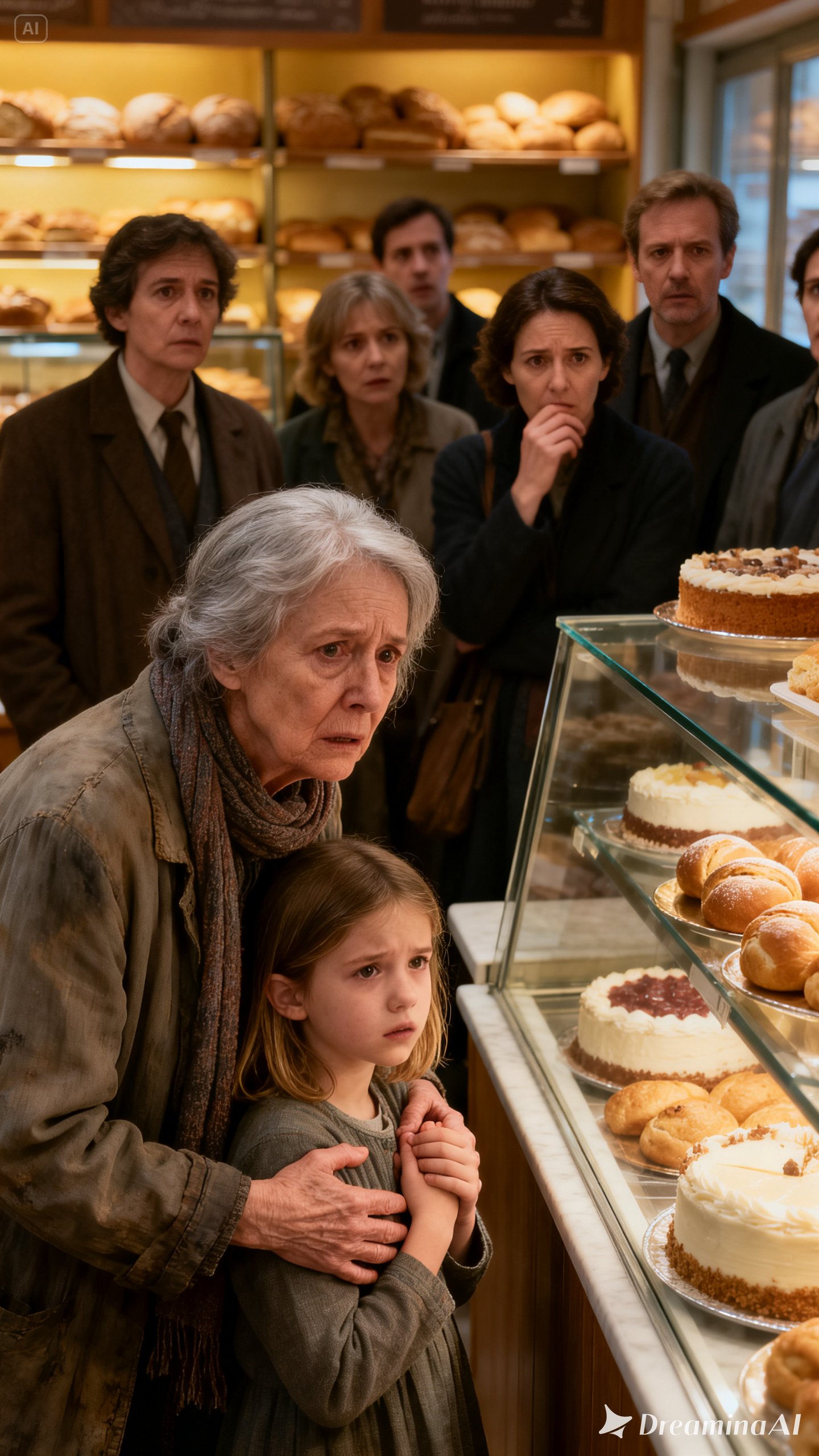 The little girl tightened her grip on her grandmother’s hand, lowering her eyes in shame, as though wanting something sweet was something forbidden.