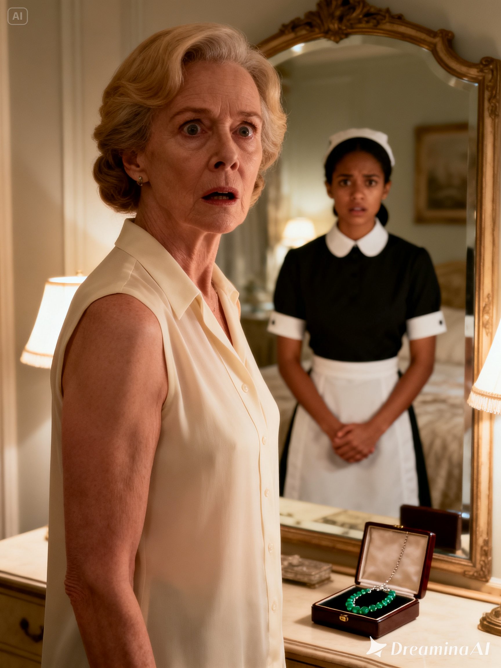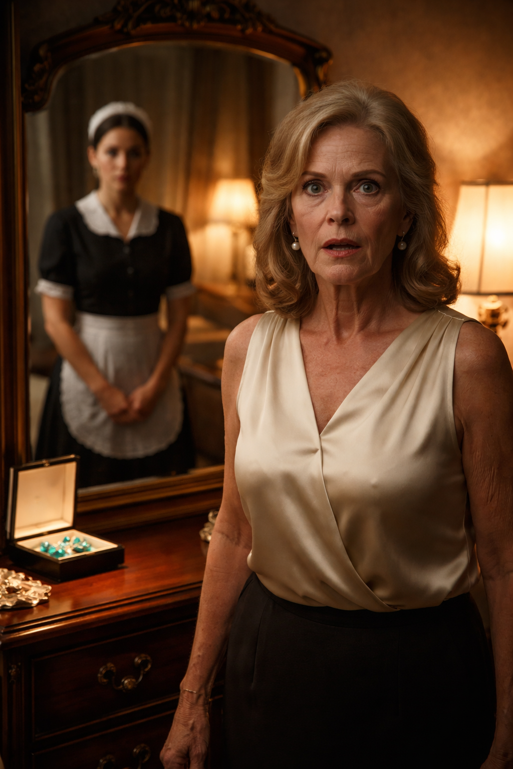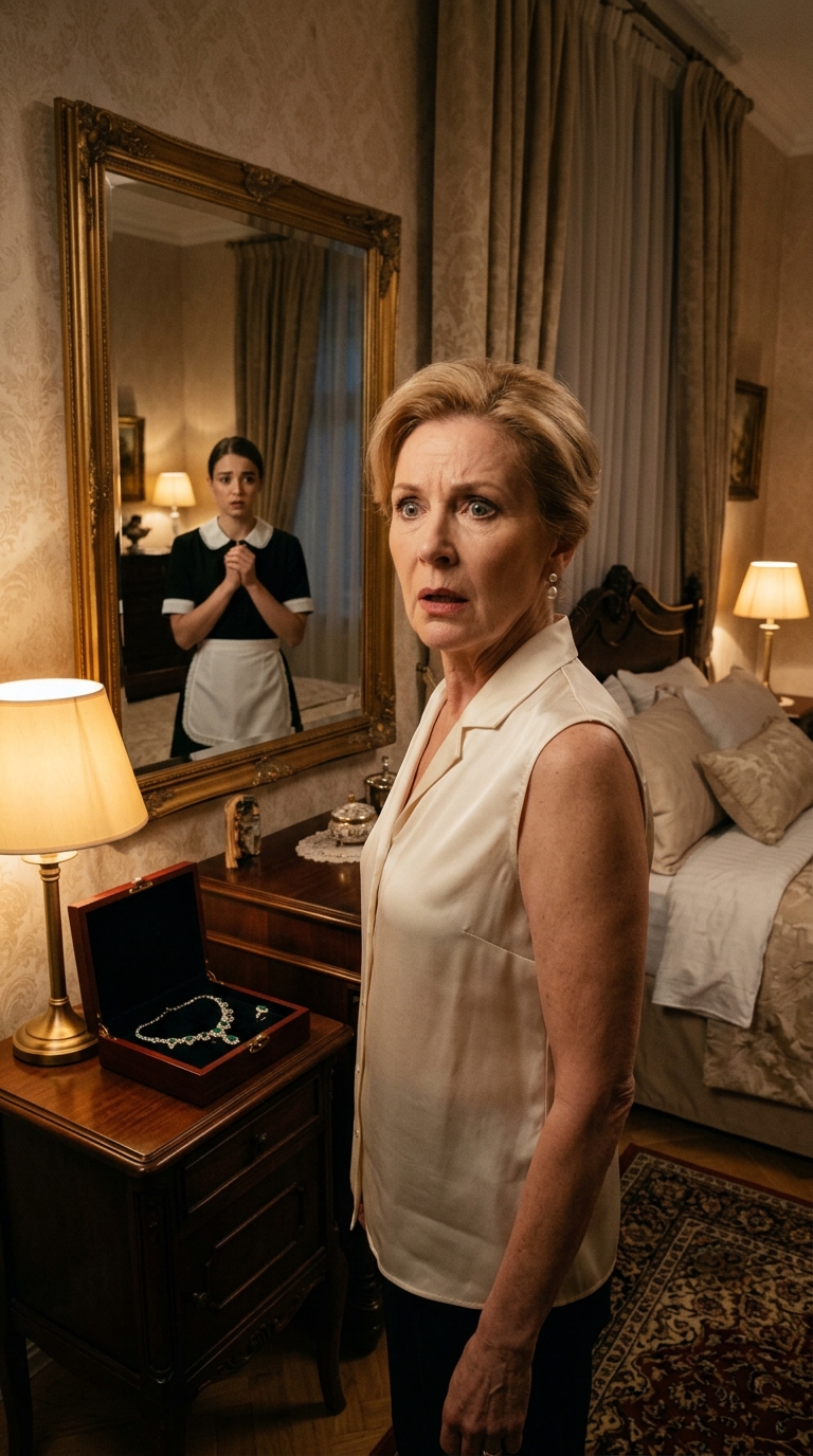 The older woman looked from the necklace in the box to the one around the maid’s neck and whispered: