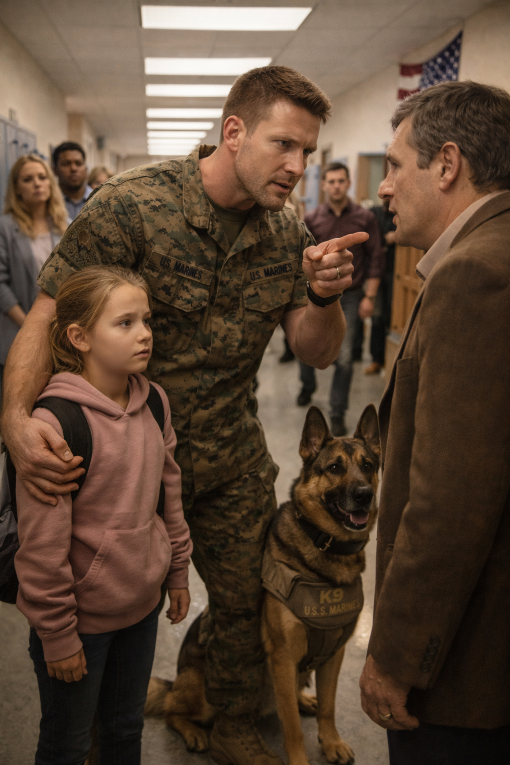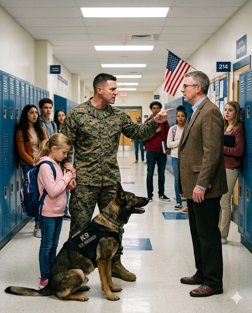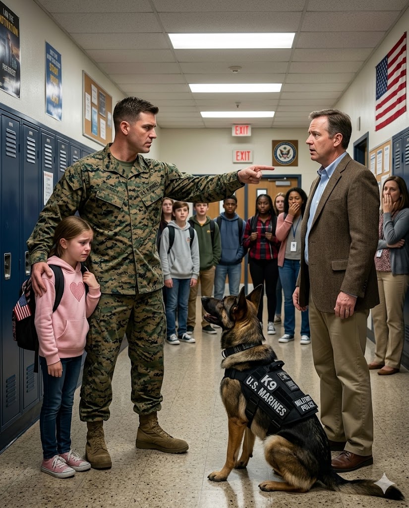 “My dad is a Marine,” she said, her voice growing more confident. “And he works with a dog named Koda. Koda helps him find dangerous things like explosives so people stay safe.”