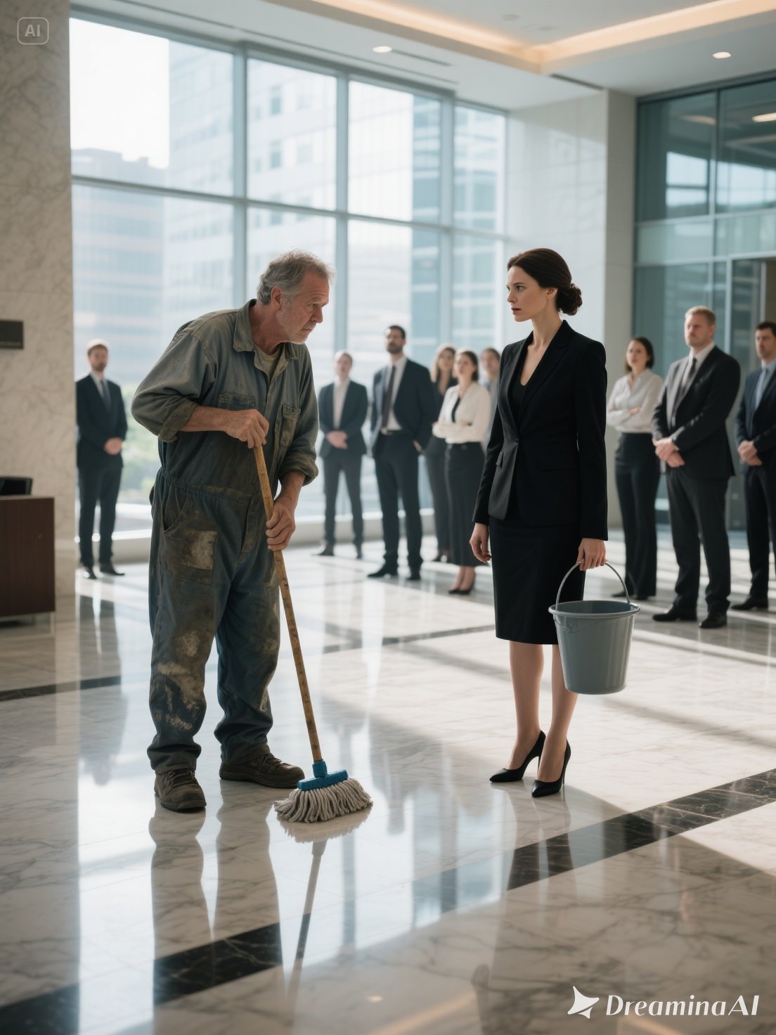 It toppled with a crash, icy gray water spilling across the tiles and soaking my shoes and jumpsuit. Laughter rippled through the office—nervous from some, gleeful from others.