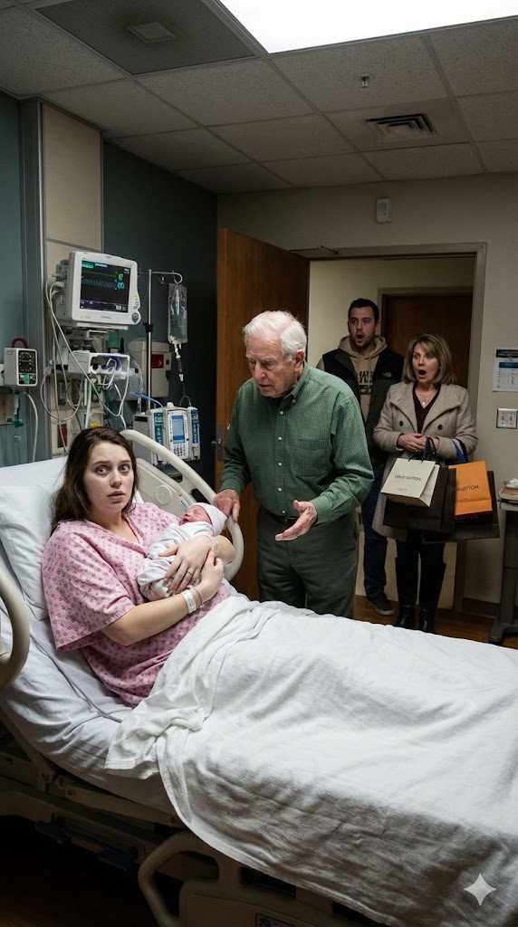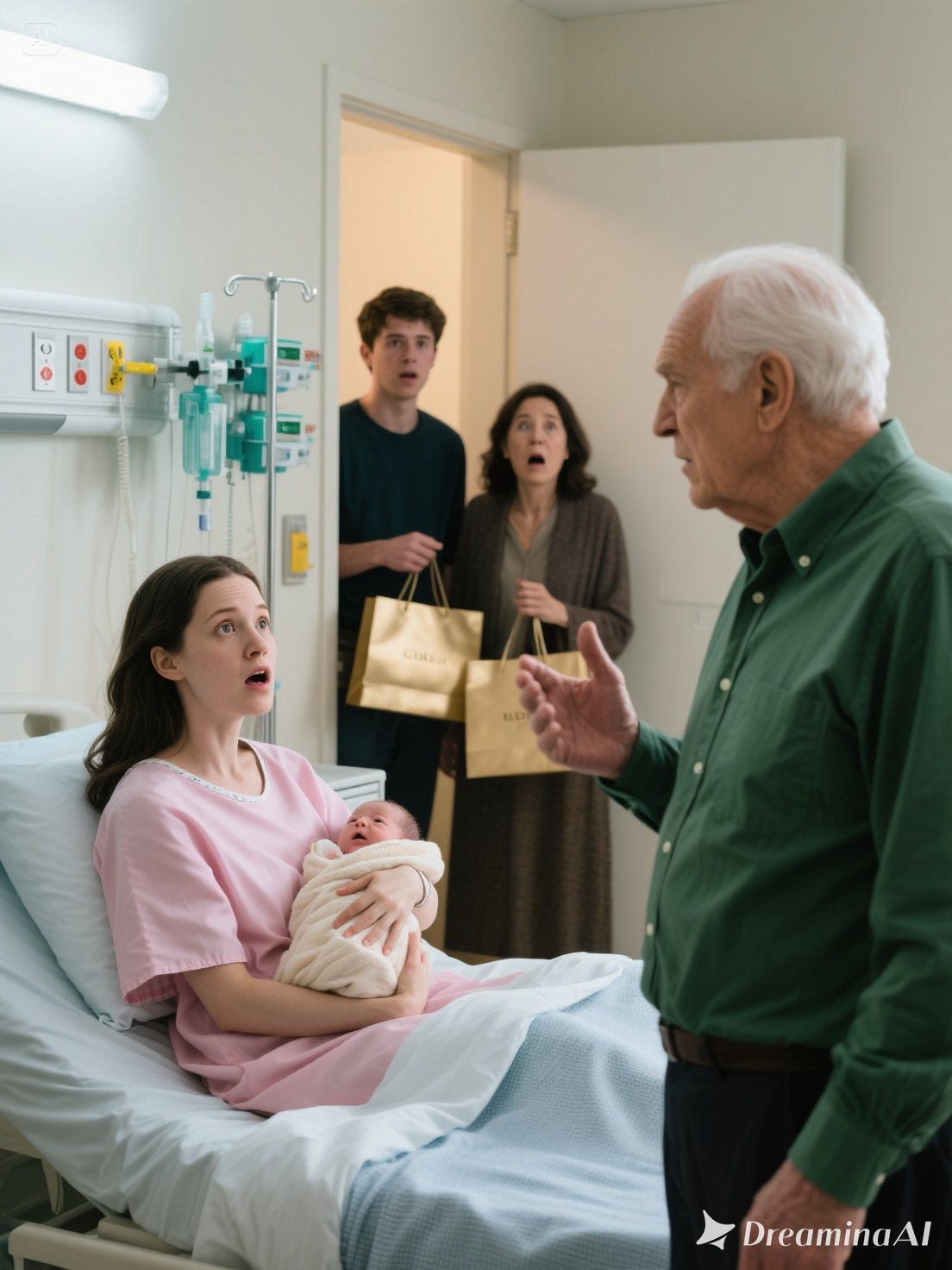 As my grandfather walked in after I gave birth, his first words were, “My dear, wasn’t the 250,000 I sent you every month enough?” My entire body went still. “Grandpa… what money?” I whispered. Right then, my husband and mother-in-law rushed in with their arms overflowing with luxury bags—and stopped cold. The color drained from their faces. That was the moment I sensed something was deeply wrong…