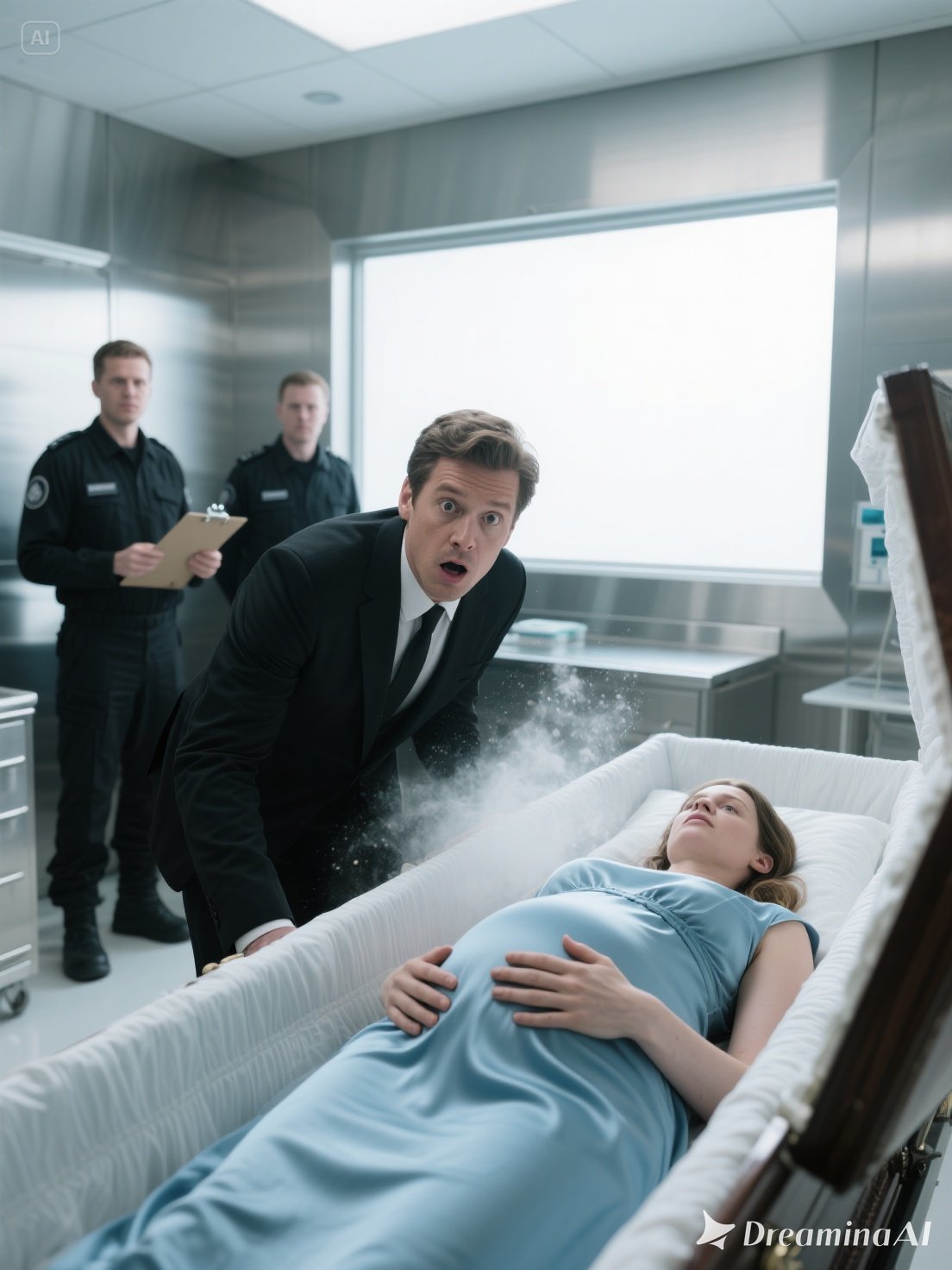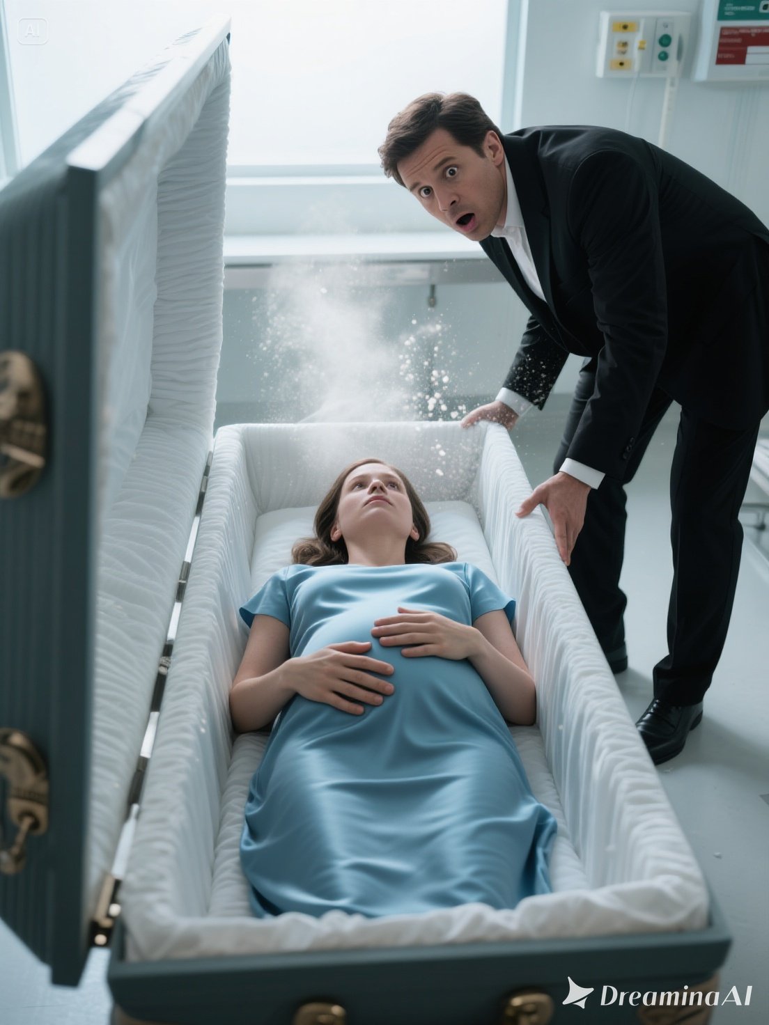 When they lifted the lid, David leaned in for a final look. That’s when he saw it — a faint, unmistakable movement beneath Emily’s dress. Her belly had shifted. At first, he thought it was an illusion or heat from the furnace. But then it moved again — stronger.