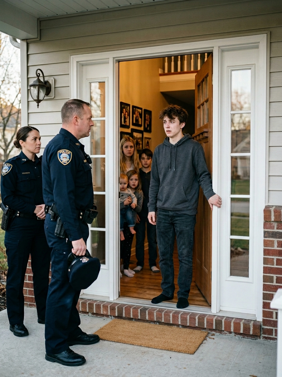 I pulled the door half-closed behind me so they couldn’t see the officers’ faces.
