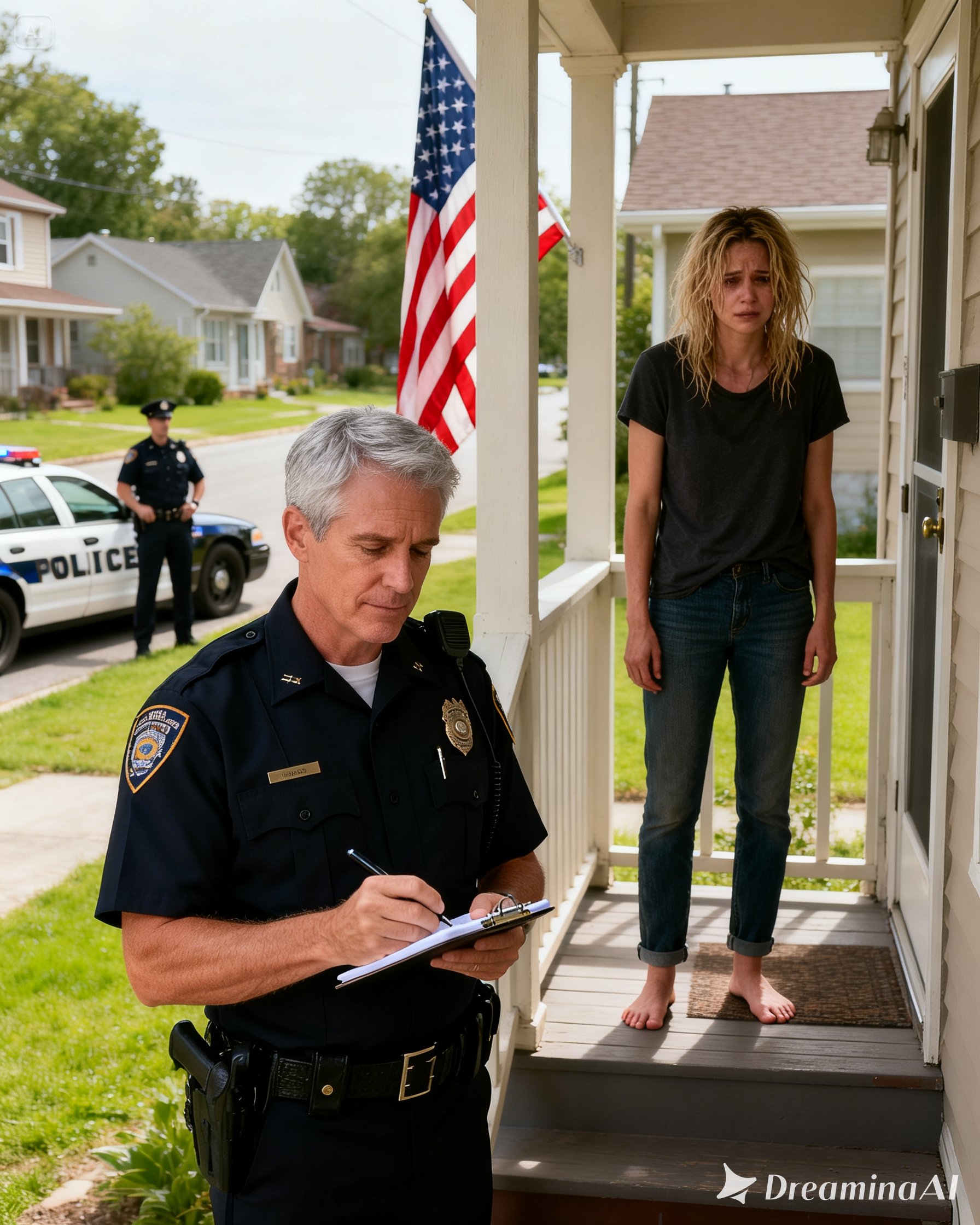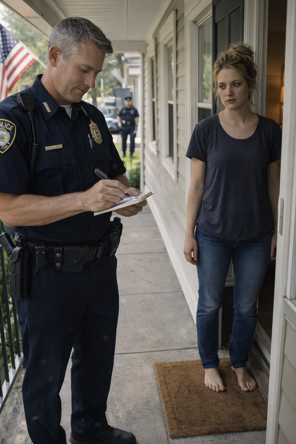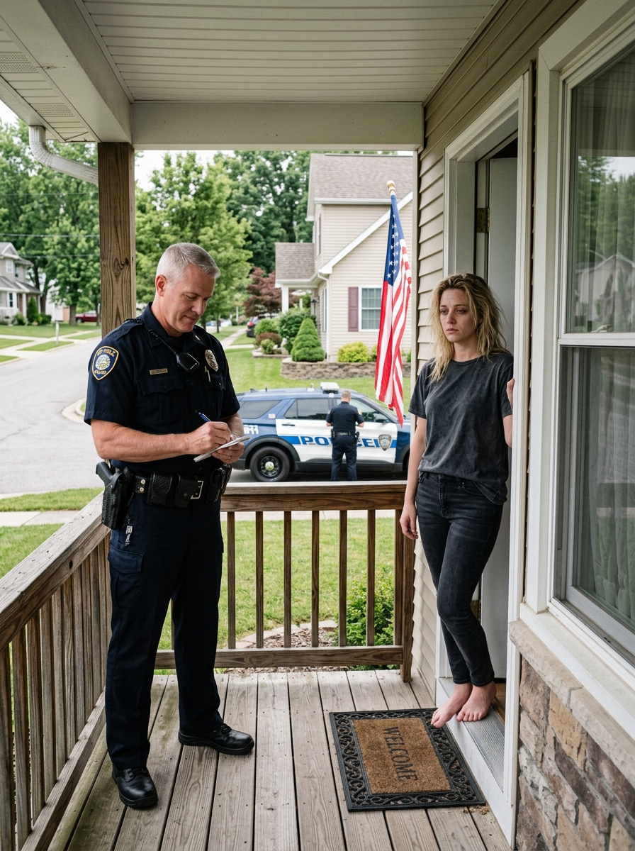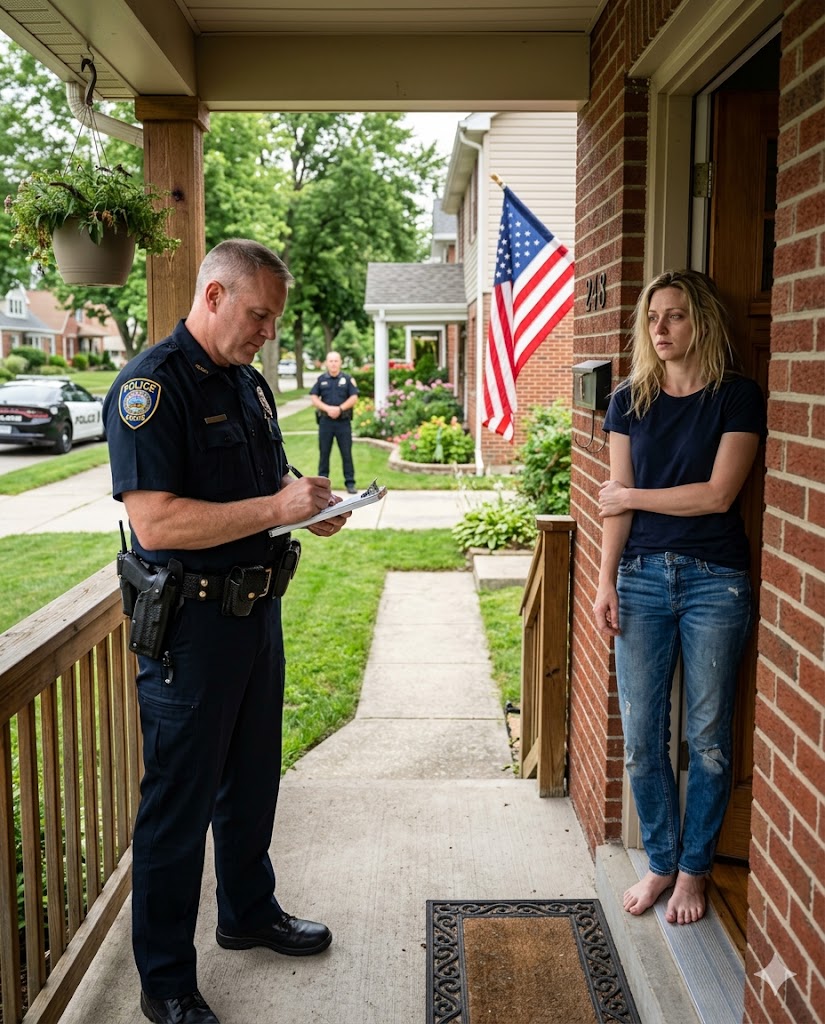 I pulled on the first robe I found and went downstairs. Through the peephole, I saw two police officers on the porch—one older, one younger—both wearing the exhausted look of men who had already been handed too much chaos before breakfast.