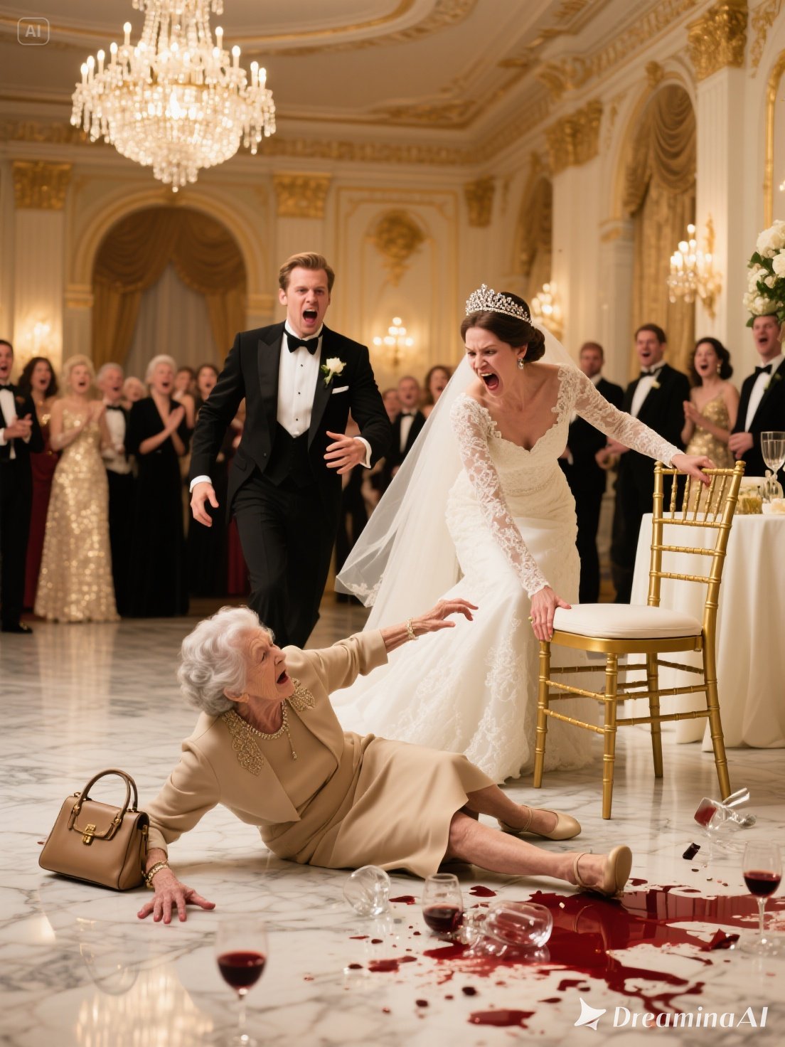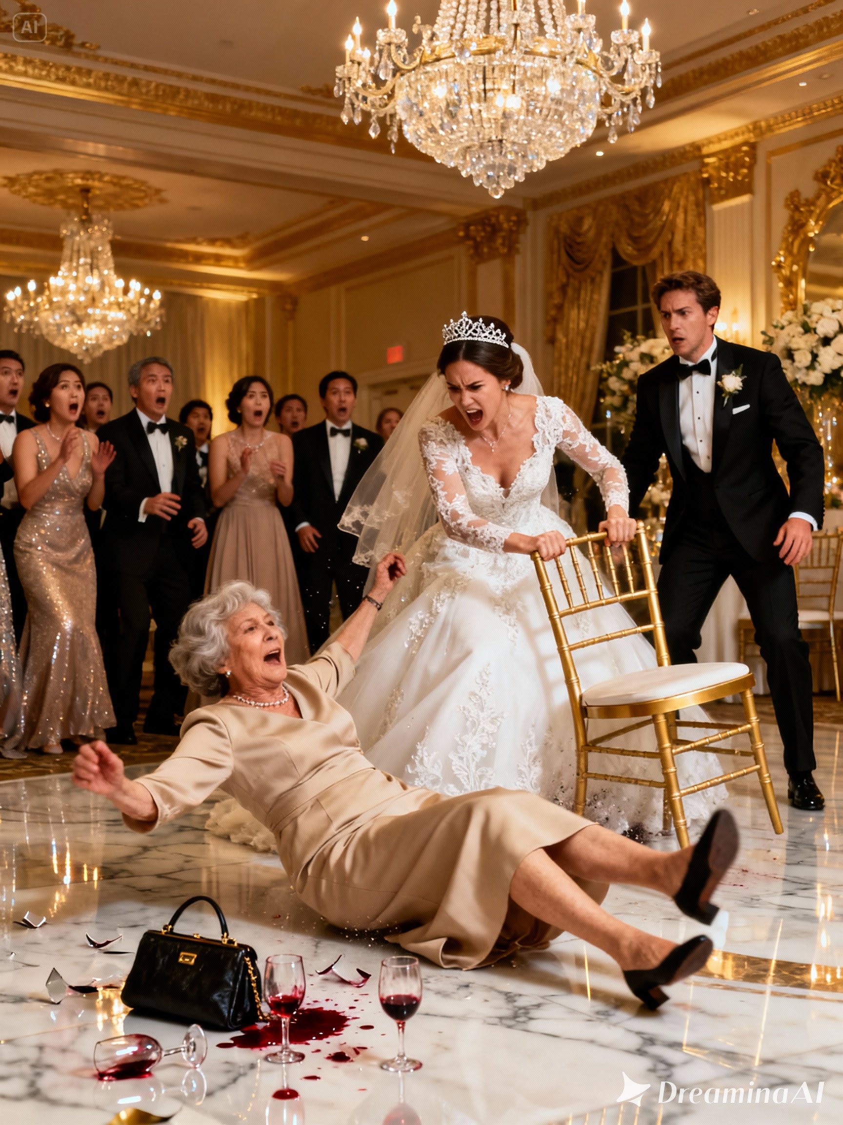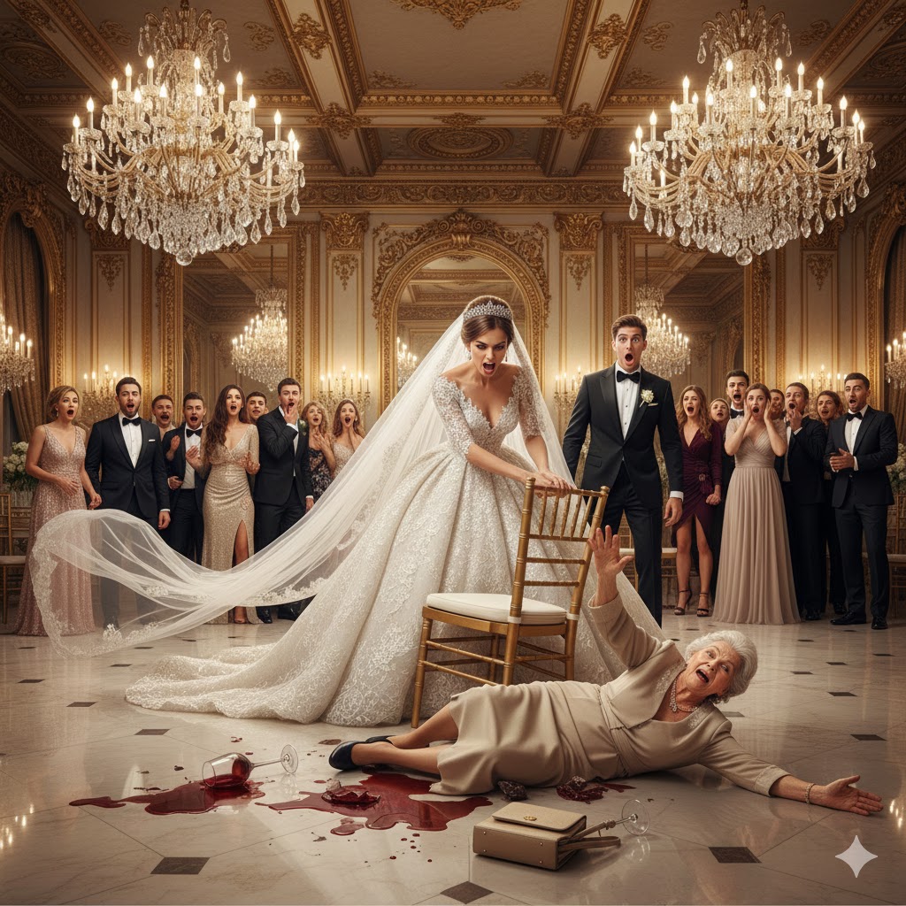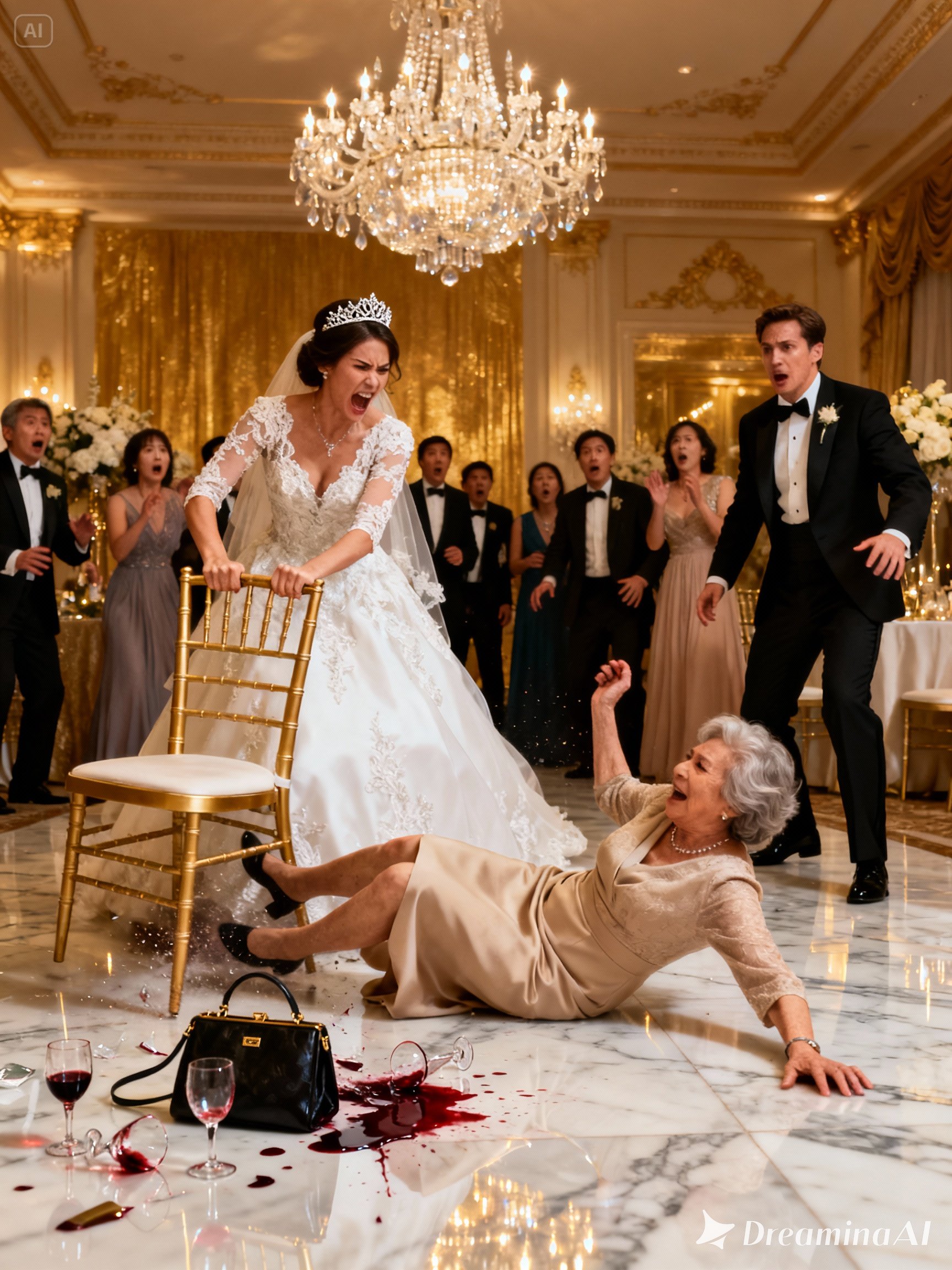 The ballroom fell silent. Guests exchanged uneasy looks. Daniel crouched beside his mother, helping her gather her spilled belongings, his face tight with shock and anger.