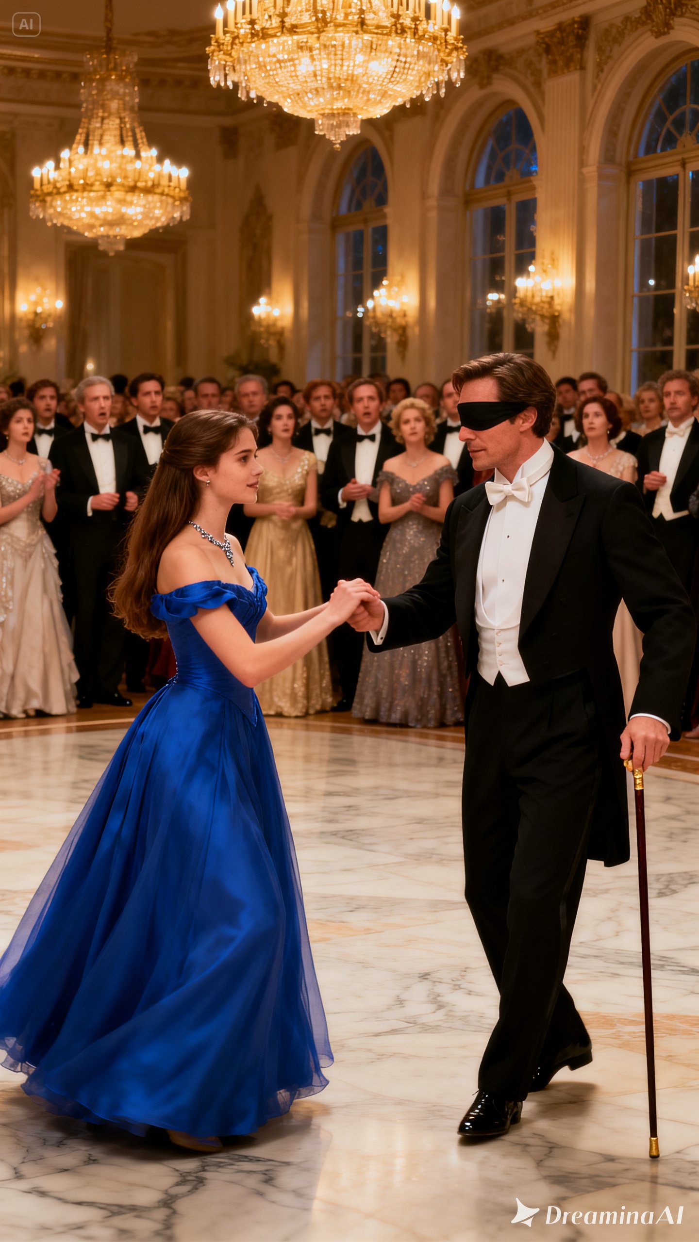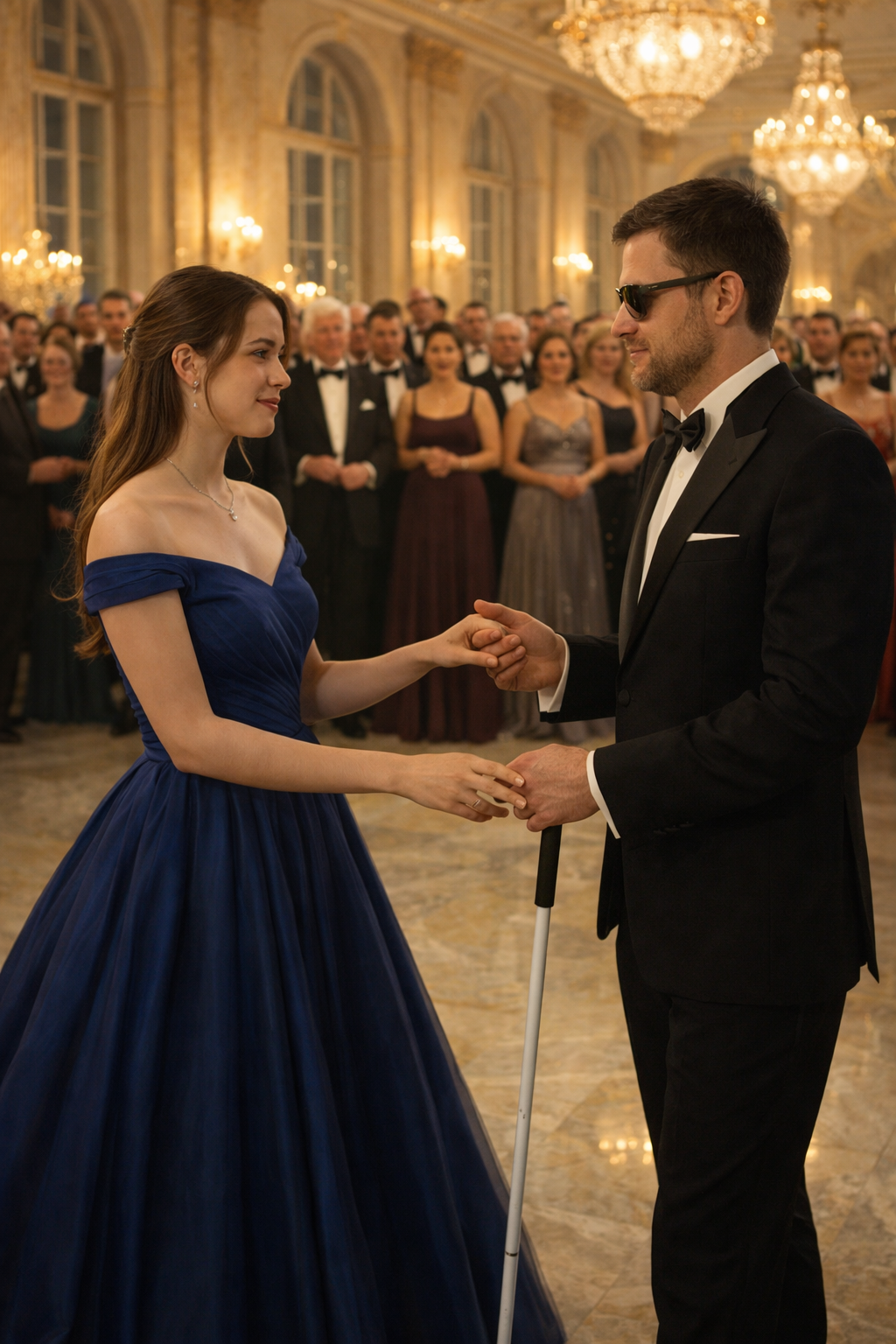 Alejandro took Camila’s hand. His grip was warm, surprisingly firm. With natural elegance, he handed his cane to a startled waiter and let Camila guide him gently to the center of the room. He signaled to the orchestra conductor, and a slow, melancholic bolero began to play.