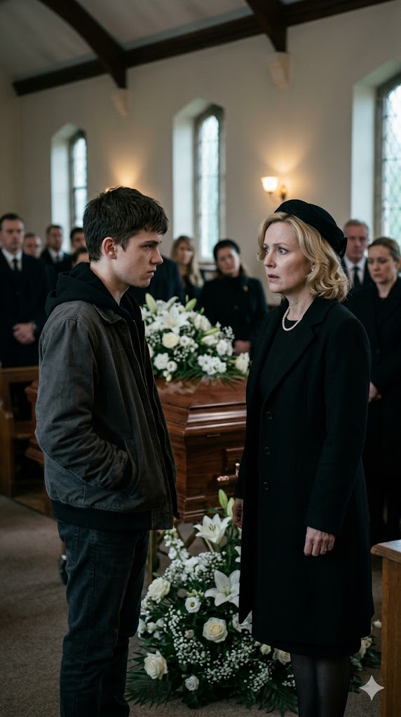 “I think there must be some mistake,” I said, though my stomach twisted with something deeper. “You shouldn’t be here. This is a private family service.”