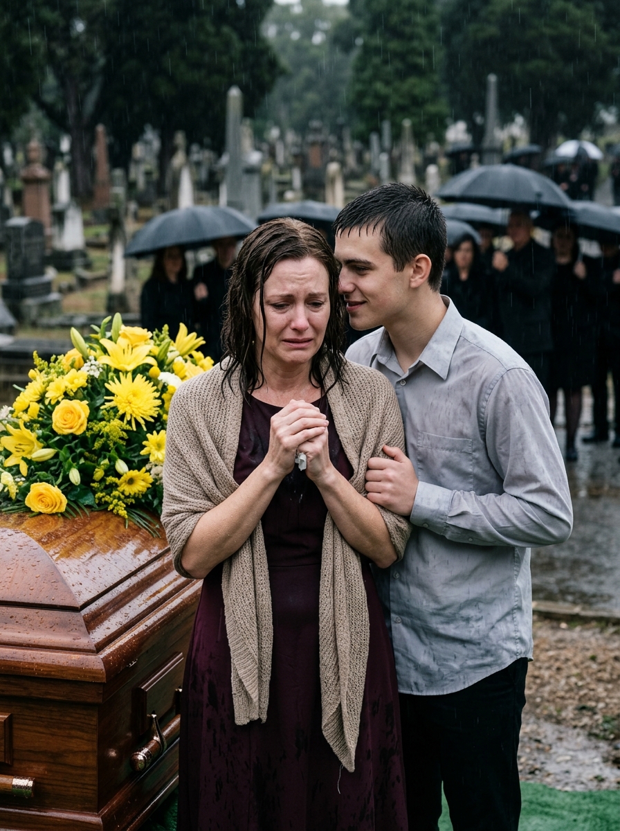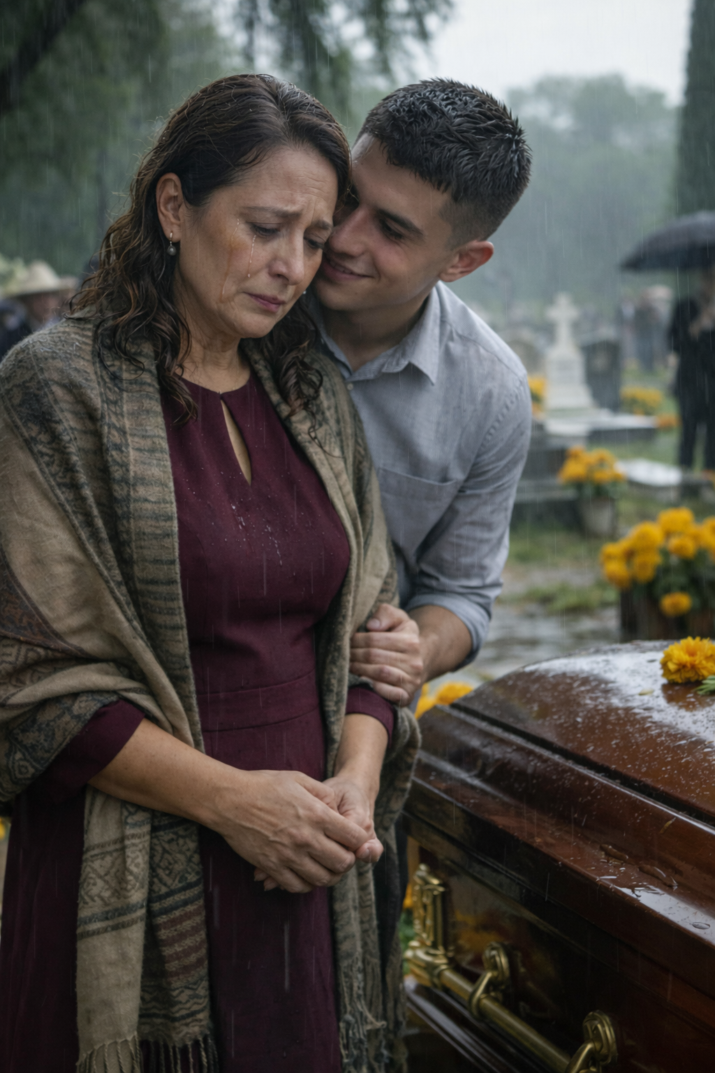 Beside me stood Diego, my son. His jaw was tight, his eyes fixed on the coffin as if it were an unfinished obligation.