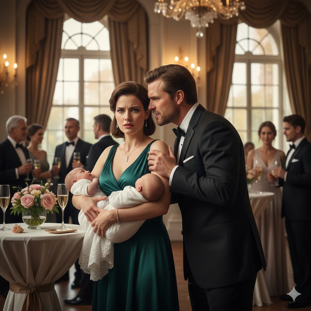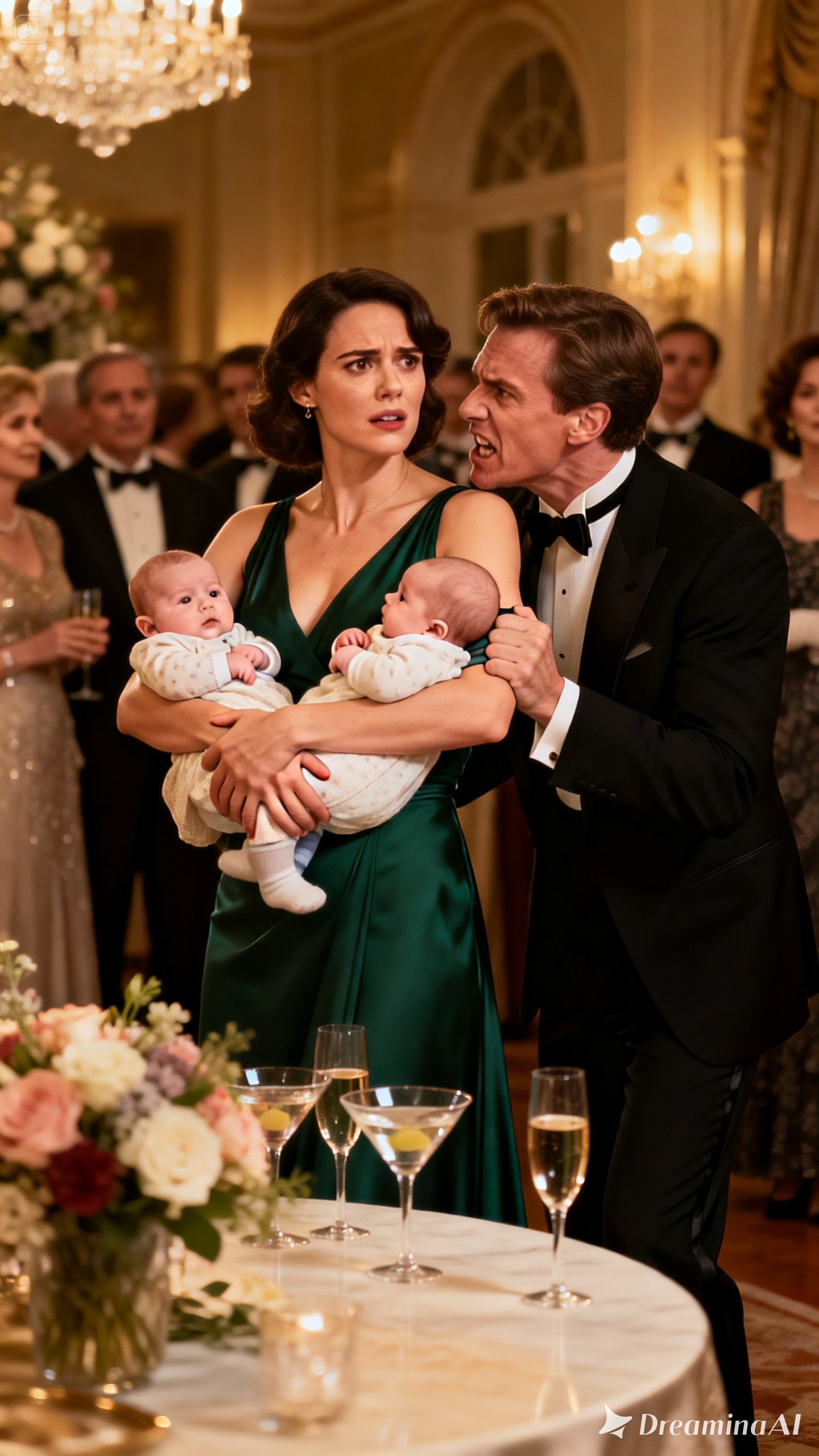 One of the twins, Noah, turned suddenly and became sick against my shoulder, leaving a dark stain across silk that had already felt too fragile for the evening, and I reached for a cloth with practiced calm, because motherhood teaches you to manage mess without ceremony. Evan saw it instantly, and the warmth drained from his face as though someone had flipped off a switch behind his eyes.