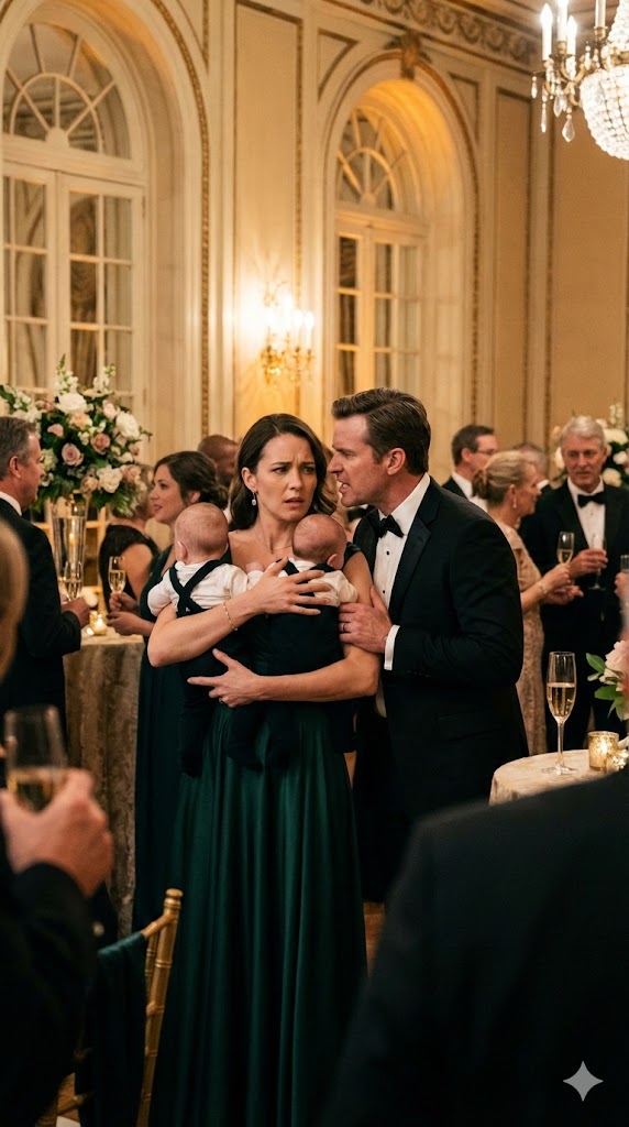 The ballroom shimmered with carefully staged success—polished glass, deliberate lighting, and the kind of laughter people rehearse in mirrors before attaching it to ambition—yet I stood near the edge of the room with a stroller and two restless infants, feeling less like a guest and more like something misplaced. My husband, Evan Mercer, was celebrating his promotion to executive director, and to everyone there he was a rising star, a disciplined visionary, a man who had earned his reputation through relentless drive and visible confidence.