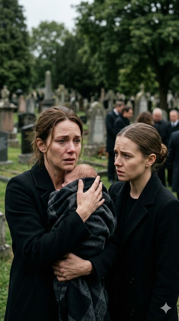 That’s when I saw her—a woman with messy blonde hair holding a baby boy. She wasn’t focused on the casket. She was watching me.