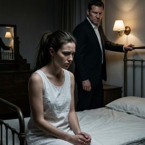 A woman in a crimson dress stepped in, scanning the room nervously. When her eyes met mine, she flinched.