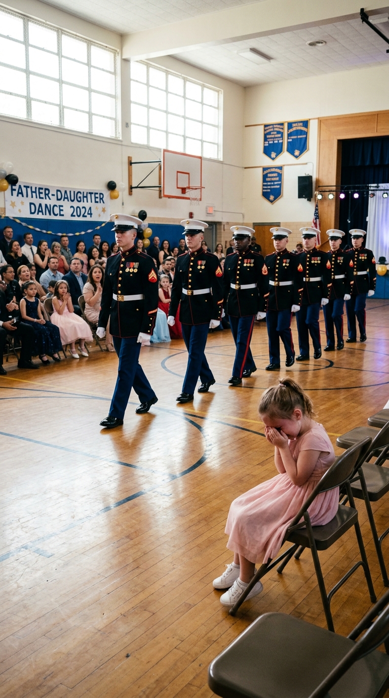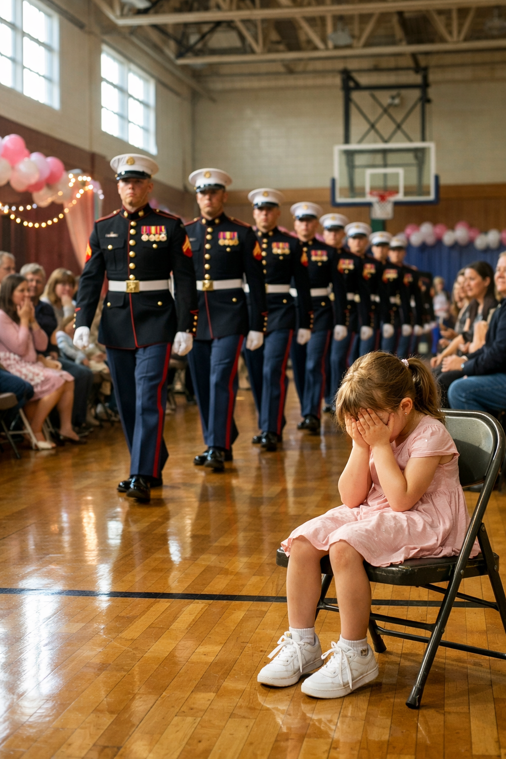 The music started again, softer this time. The Marines didn’t dance. Instead, they formed a quiet circle around Sophia, giving her the space to step onto the floor without judgment, mockery, or pity.