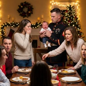 My sister slapped my six-month-old at Christmas dinner and accused me of “overreacting.” Everyone froze, stunned, unsure how to react. But then my husband, a military commander, rose to his feet, fixed her with a cold, unwavering stare, and said just one sentence: “Get out.” She never came back.