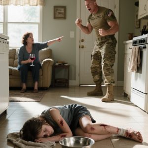 The little girl knelt on the floor, her tiny hands red and raw. Her stepmother’s voice cut through the silence like a whip. “Clean it properly! If you can’t, you don’t get to eat!”