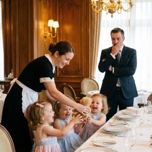 A Widowed Millionaire Brought His Mute Triplets to Work… The Waitress’s Gesture Made Them Speak