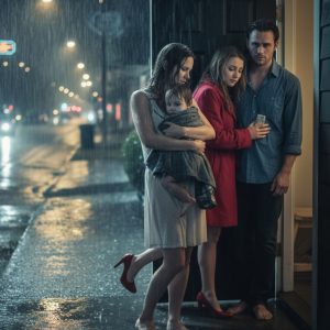 The rain poured over Portland that night, turning every street into a river of reflections. Emma Collins stood barefoot on the porch, clutching her three-year-old son, Leo, as...