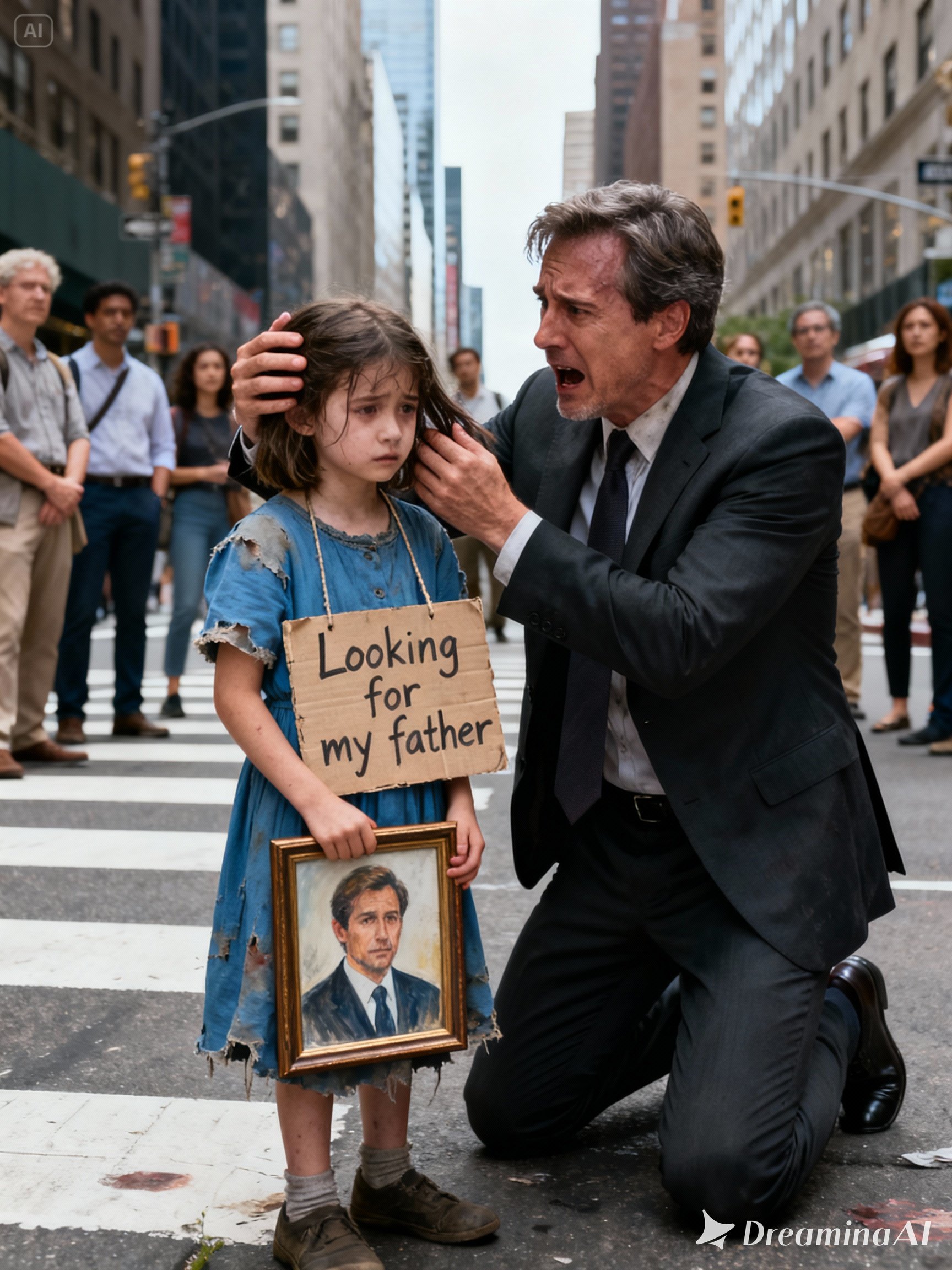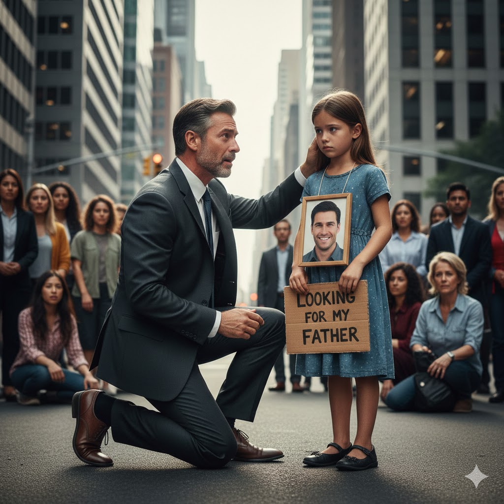 The child he had mourned for seven long years was alive. She had been searching for him on the streets of New York, holding a memorial photo of a man who never truly died.