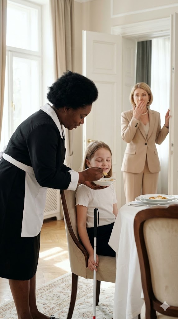 When the meal ended, Elena approached her, emotion thick in her voice. “Excuse me,” she said gently. “I saw what you did for my daughter. She’s blind, and I… I wasn’t paying attention. Thank you. Truly.”