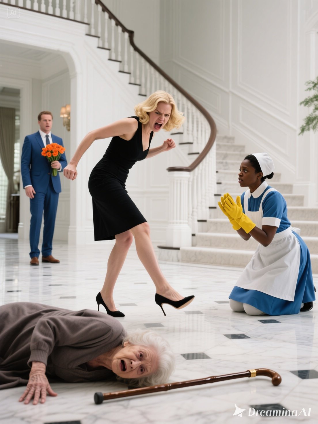 His fiancée, furious and unhinged, her heel still raised from the last strike.