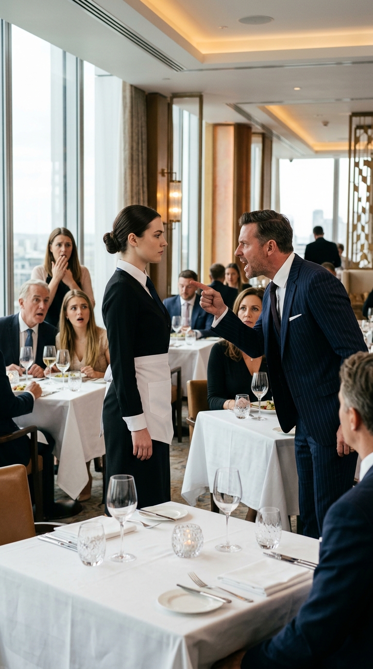 I don’t care if she’s new or incompetent. People like her shouldn’t be allowed in places like this. I’ve run companies with thousands of employees, and if any one of them performed like she did tonight, I’d have them fired on the spot. The whole restaurant fell silent. A hush blanketed the dining room, as though someone had hit a pause button on life itself.