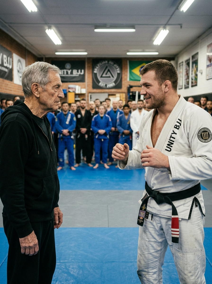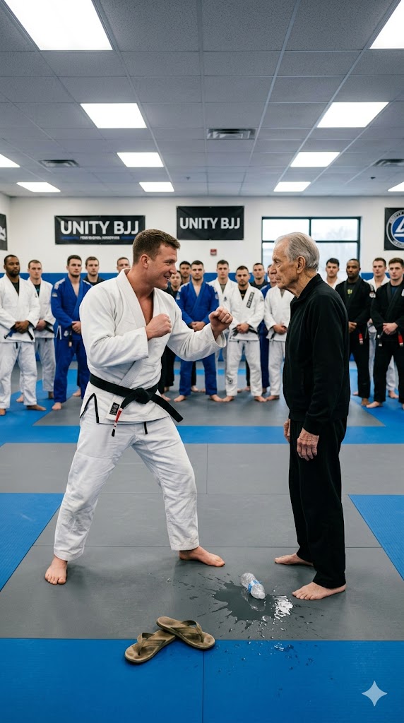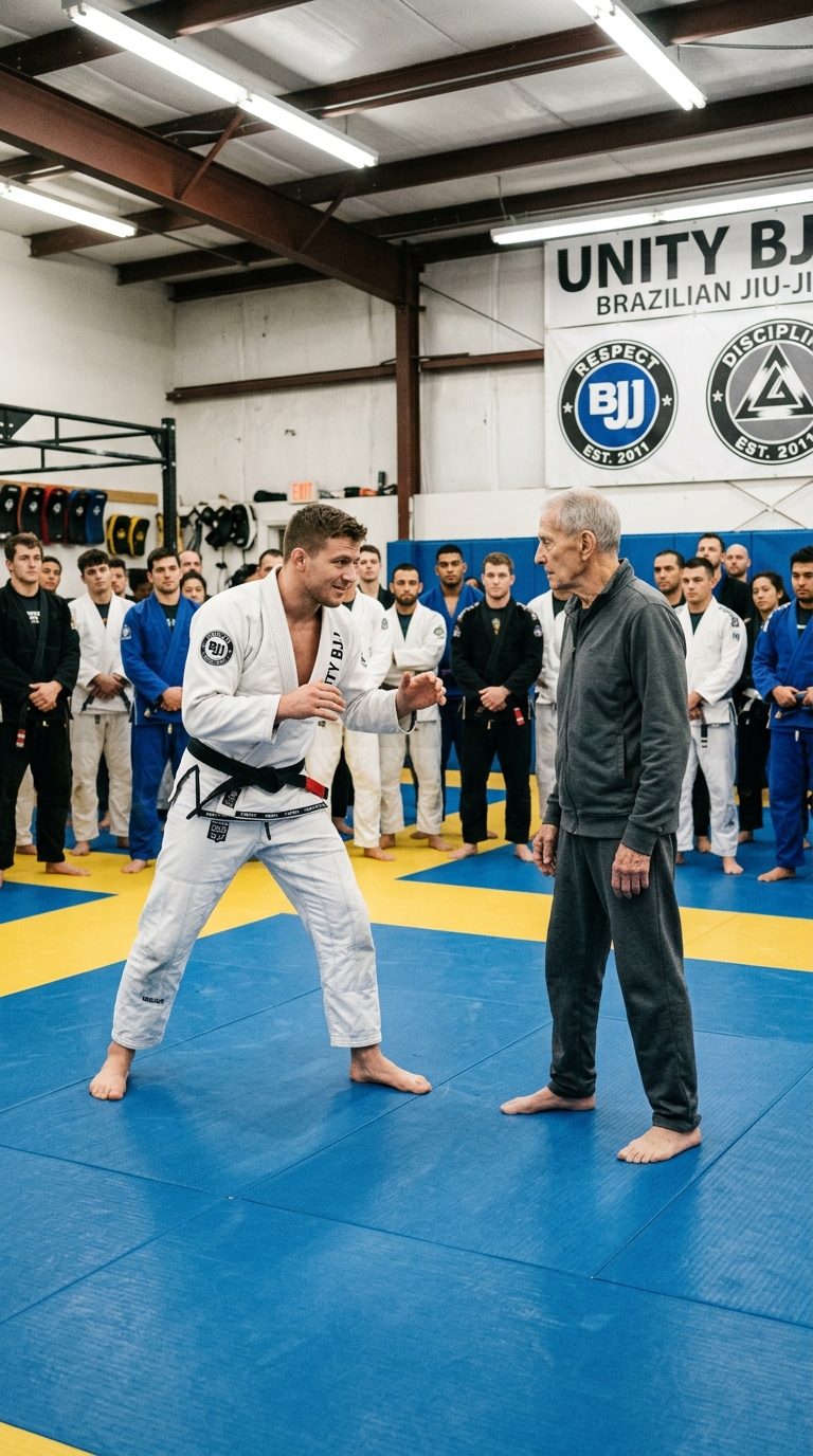 The black belts thought it would be funny to test the quiet old man who sat at the edge of the mat.