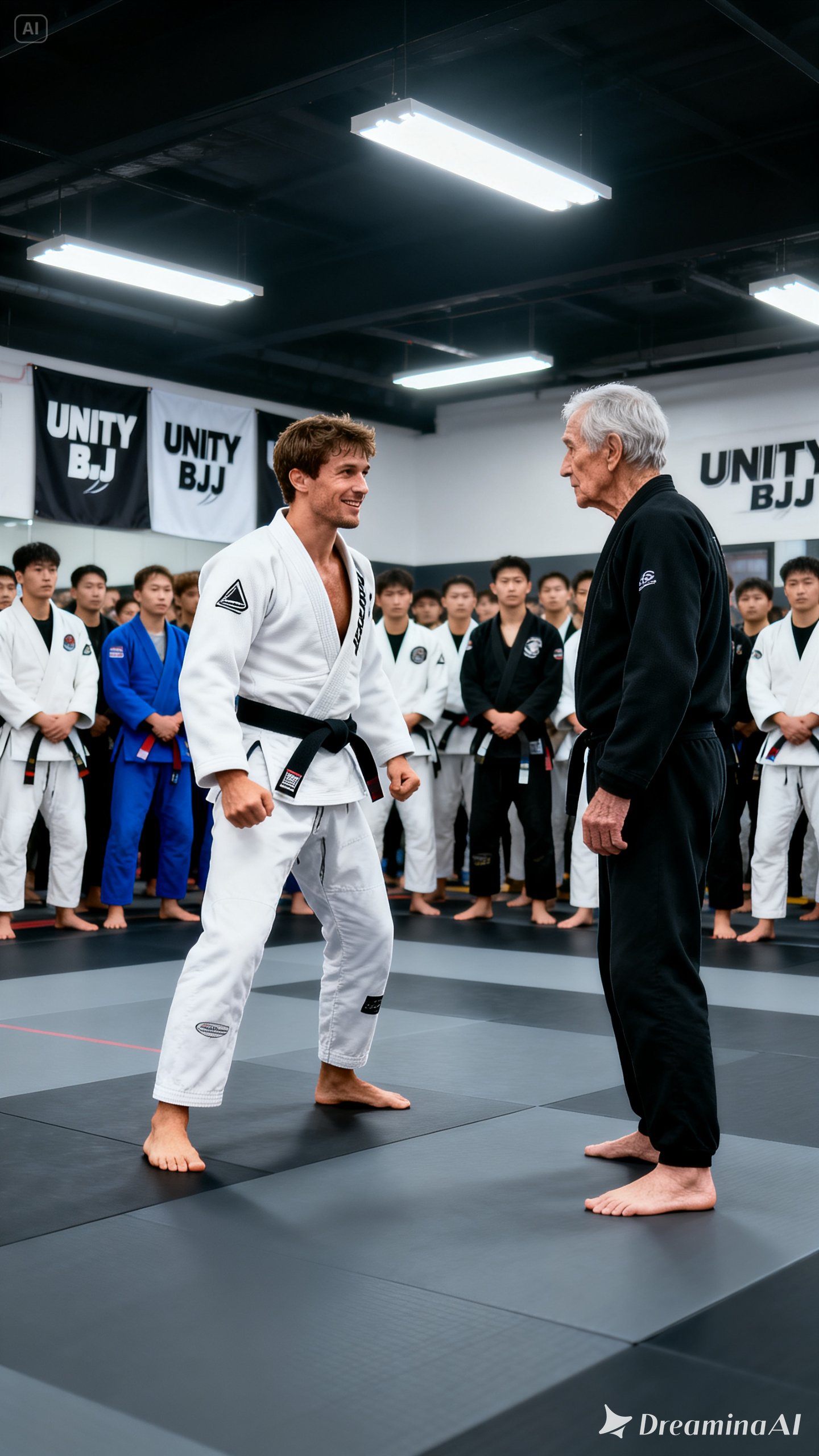 Ryan pushed himself up slowly, his breath ragged, his gi wrinkled and clinging to his skin with sweat. He stood unsteady, his shoulders heaving, and for the first time since the night began, he looked nothing like a champion. His hands trembled, not with exhaustion alone, but with something else. Uncertainty.