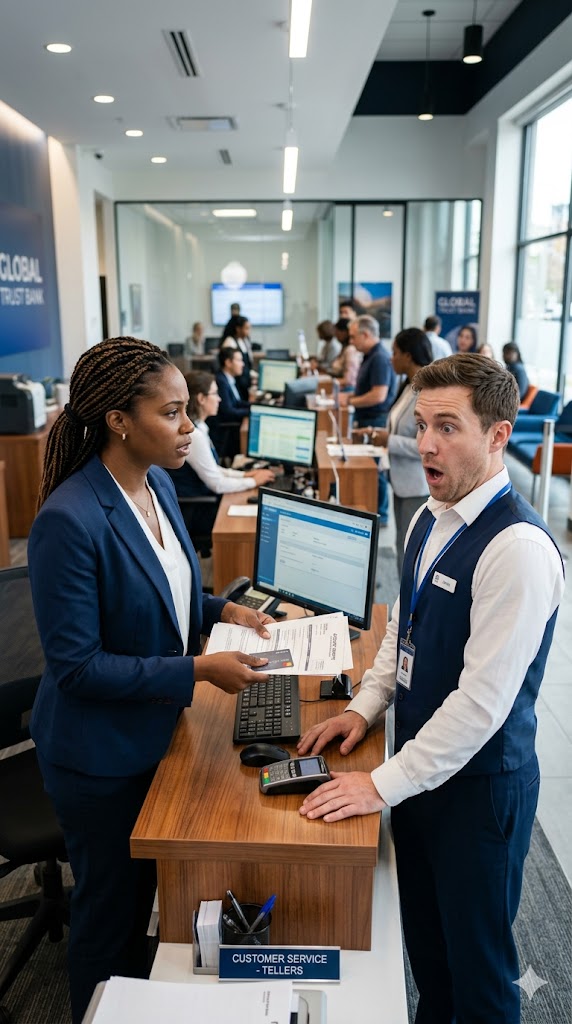 “I’ve been banking here for 6 years,” Kesha said, maintaining a professional tone despite the growing humiliation. “My account number is visible on both the card and my identification.”