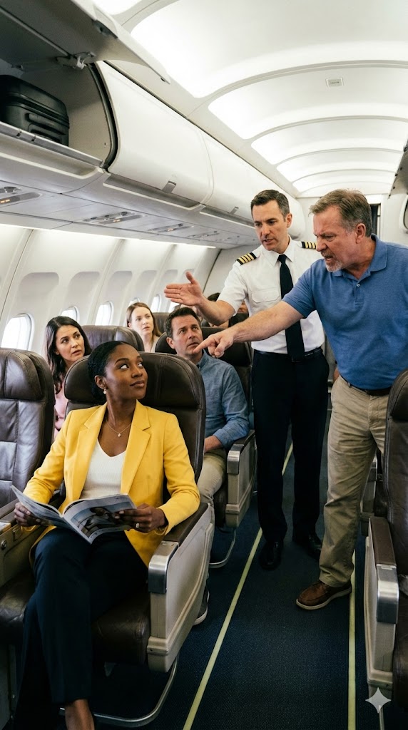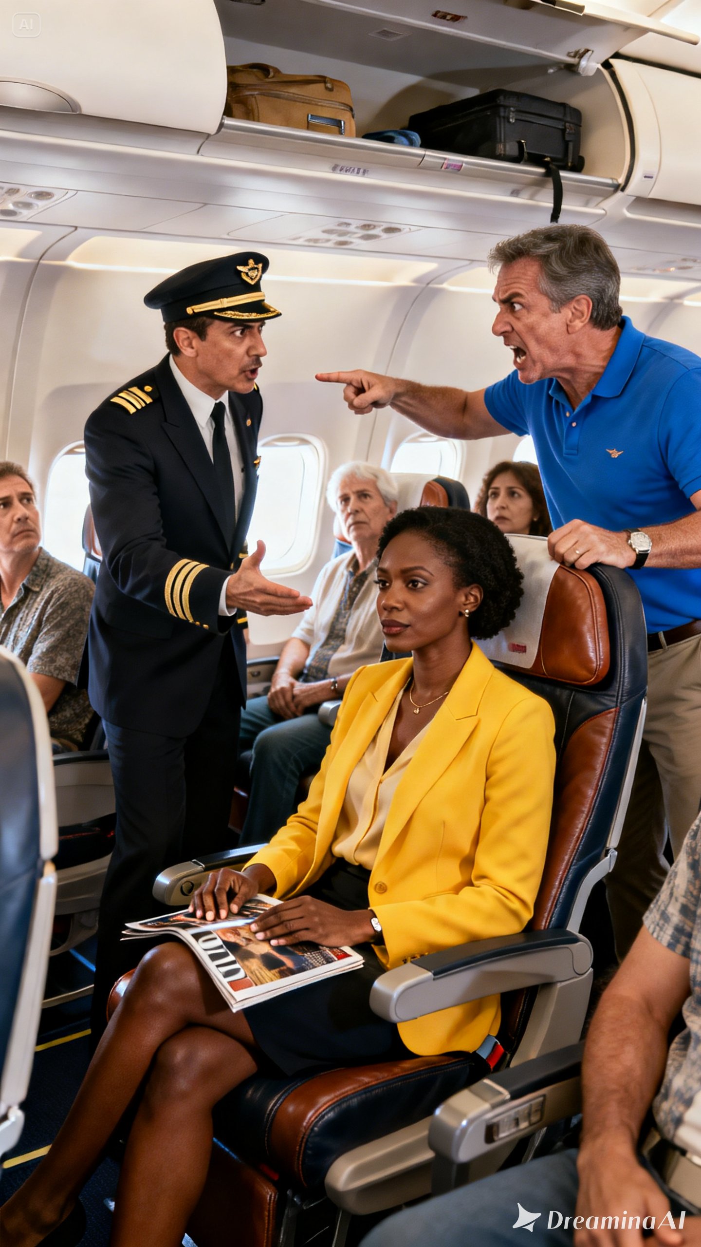 The captain stood close by, jaw tight, already assuming who was in the right. The air was thick with authority, money, and a quiet racism disguised as procedure. Before anyone could react, the man snapped, “This seat isn’t yours.”