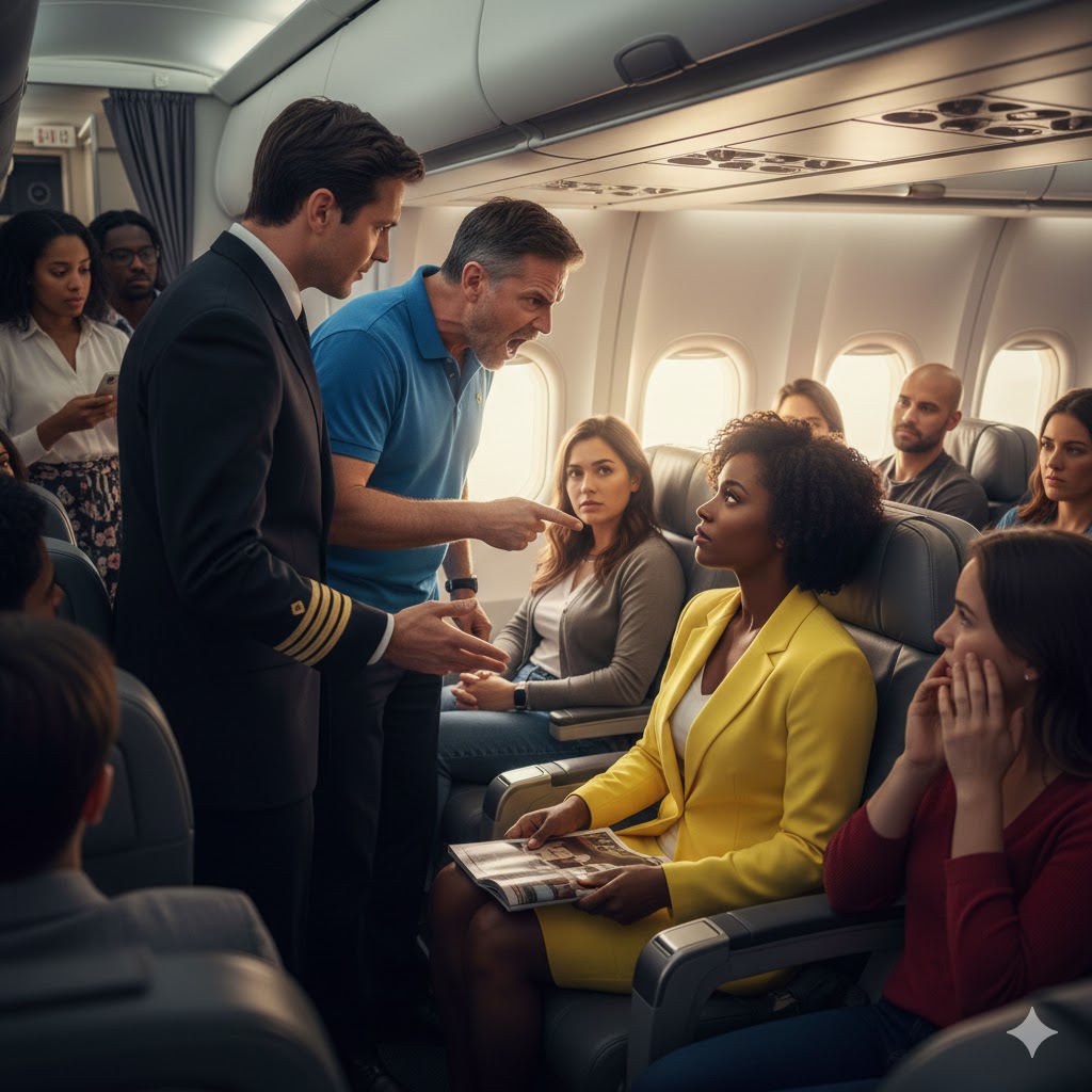 “You are asking me to give up the seat I paid for to accommodate a man who insulted me in front of this entire cabin, while you disregard a system that has already confirmed my ticket.”