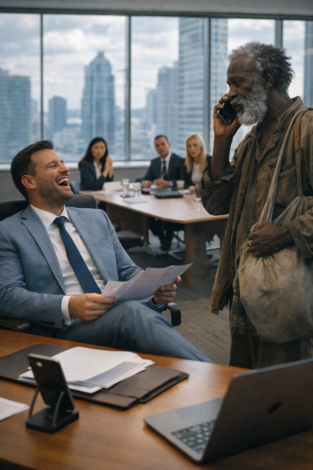 The boardroom was lined with floor-to-ceiling windows. The city stretched behind Máximo like a painting he owned: gray sky, miniature traffic, rooftops fading into the distance.