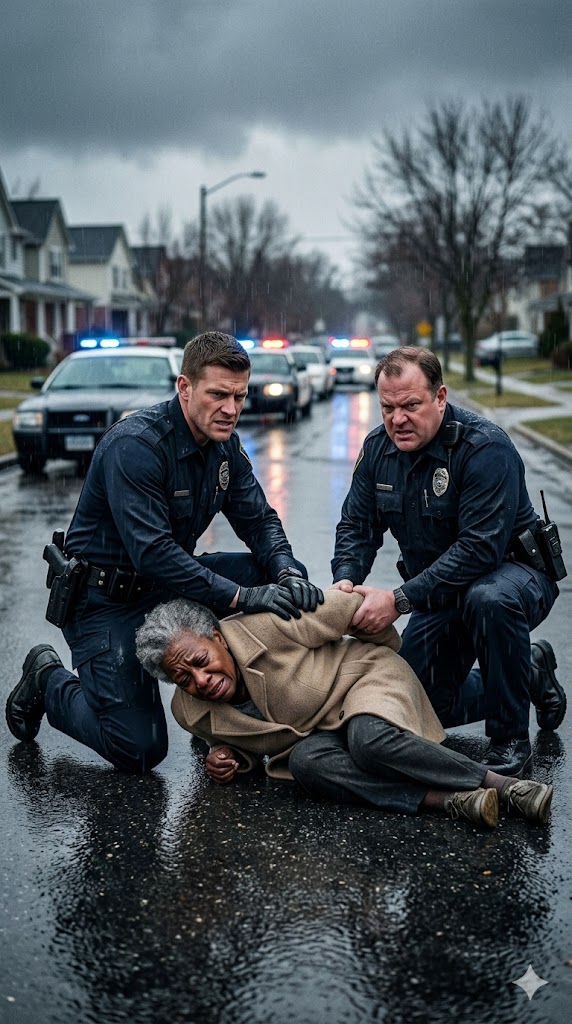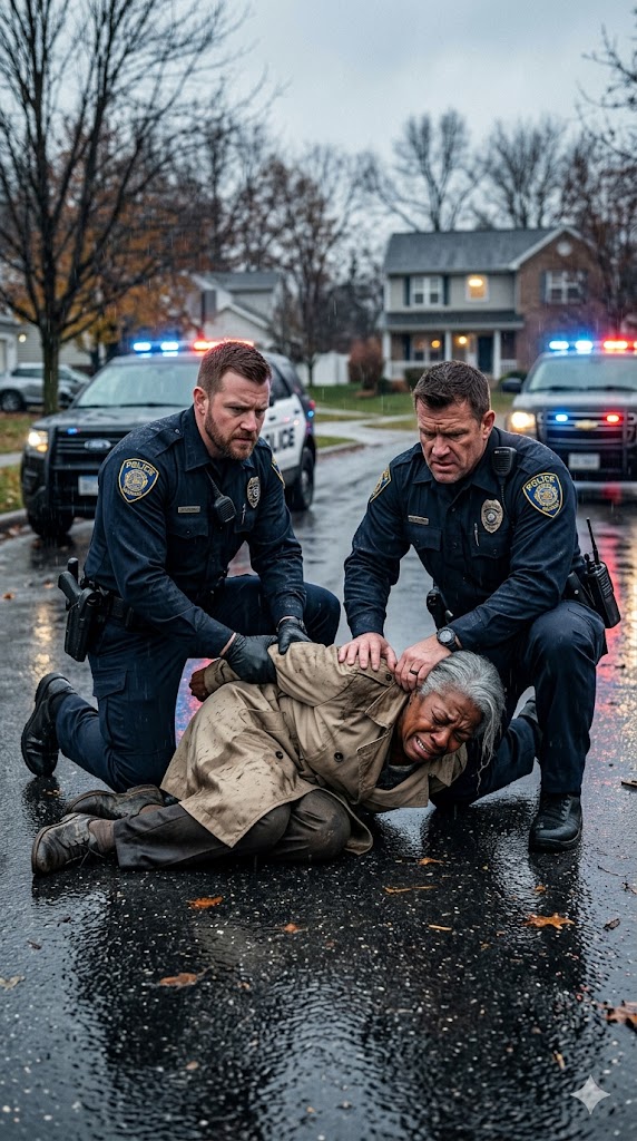 Malloy tried again to move Gloria, but two airport-style security officers from a nearby facility—drawn by the raised voices—approached, already holding up their phones. A passerby dialed 911, reporting an elderly woman being hurt. Even in the rain, public attention made Malloy’s confidence falter.
