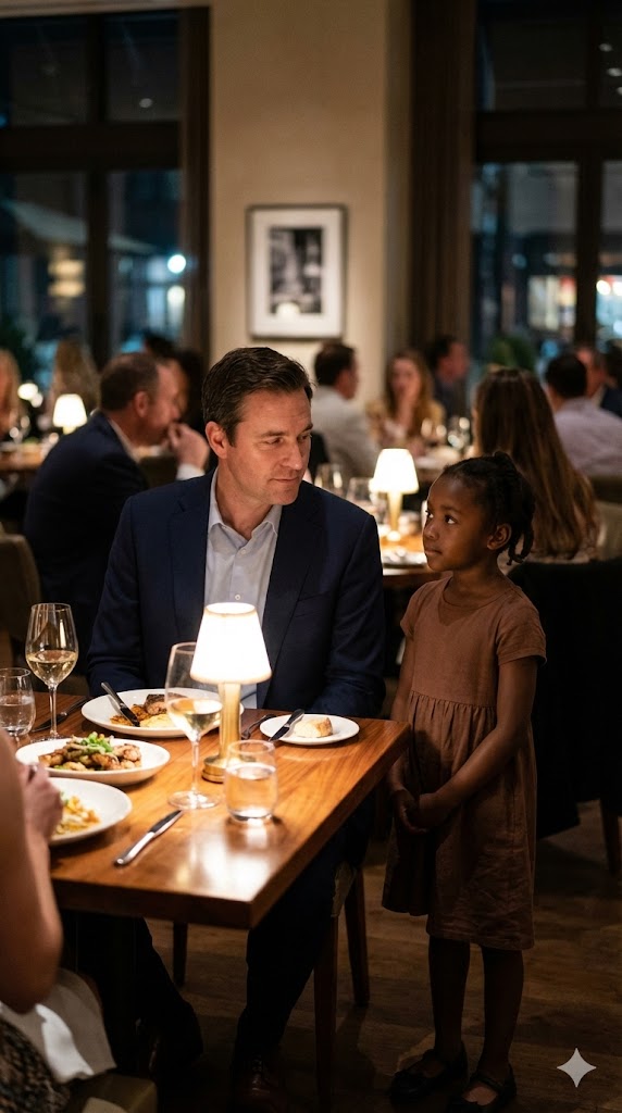 The girl’s voice was soft, trembling—yet it sliced through the low murmur of the upscale restaurant like a blade.
