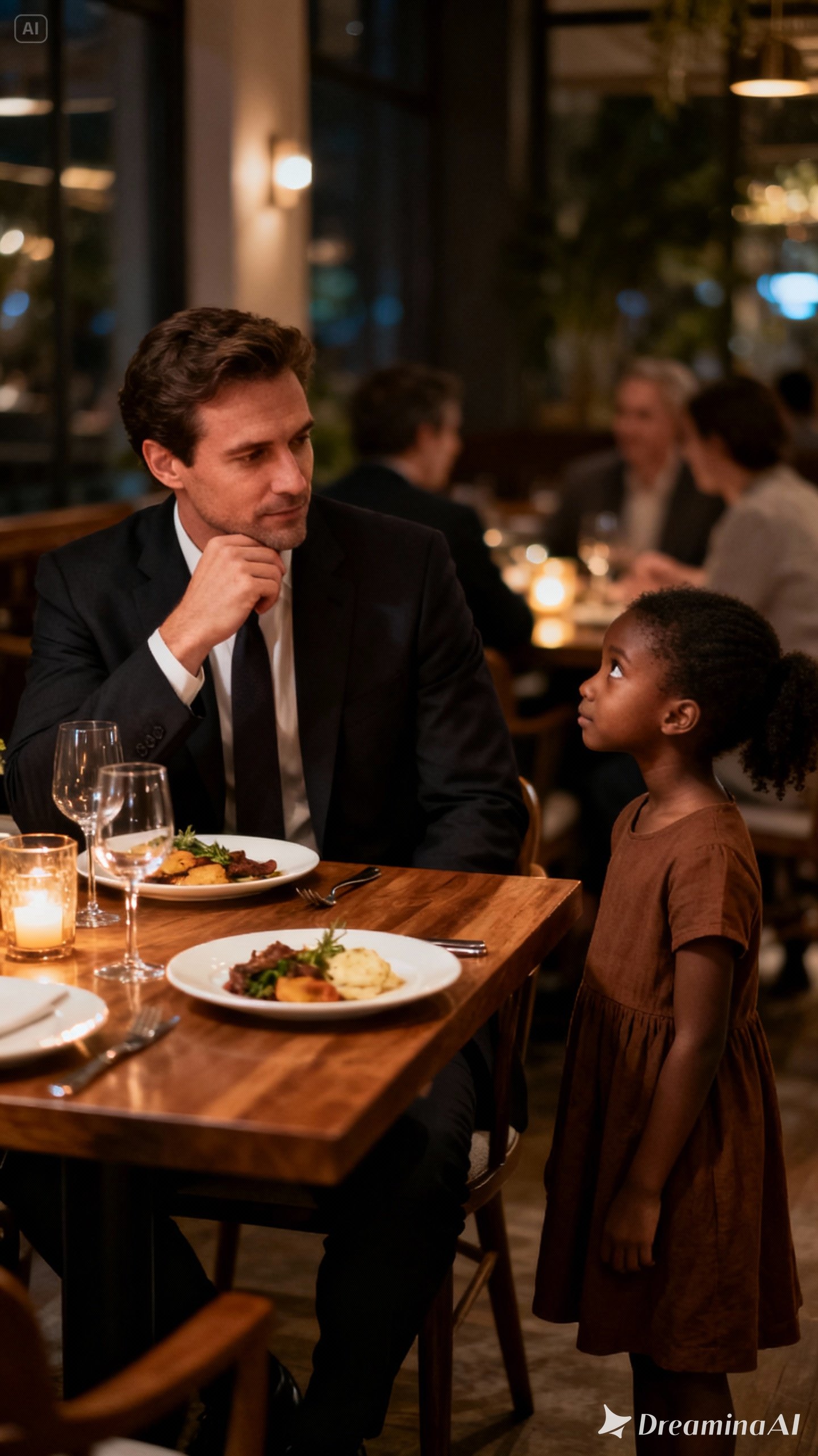 When the food arrived, Emily tried to eat politely—but hunger doesn’t wait for manners. Evans didn’t stop her. He simply watched, his expression distant, his eyes far away.